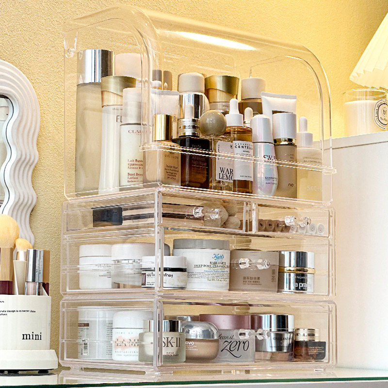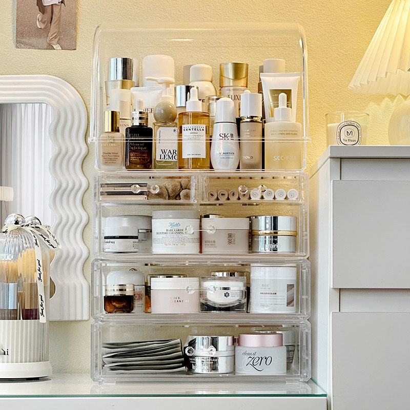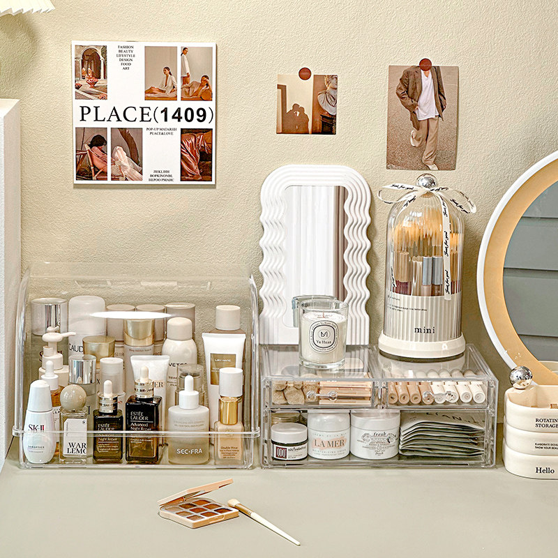 亚克力化妆品收纳盒大容量桌面防尘护肤品梳妆台整理置物架高级感