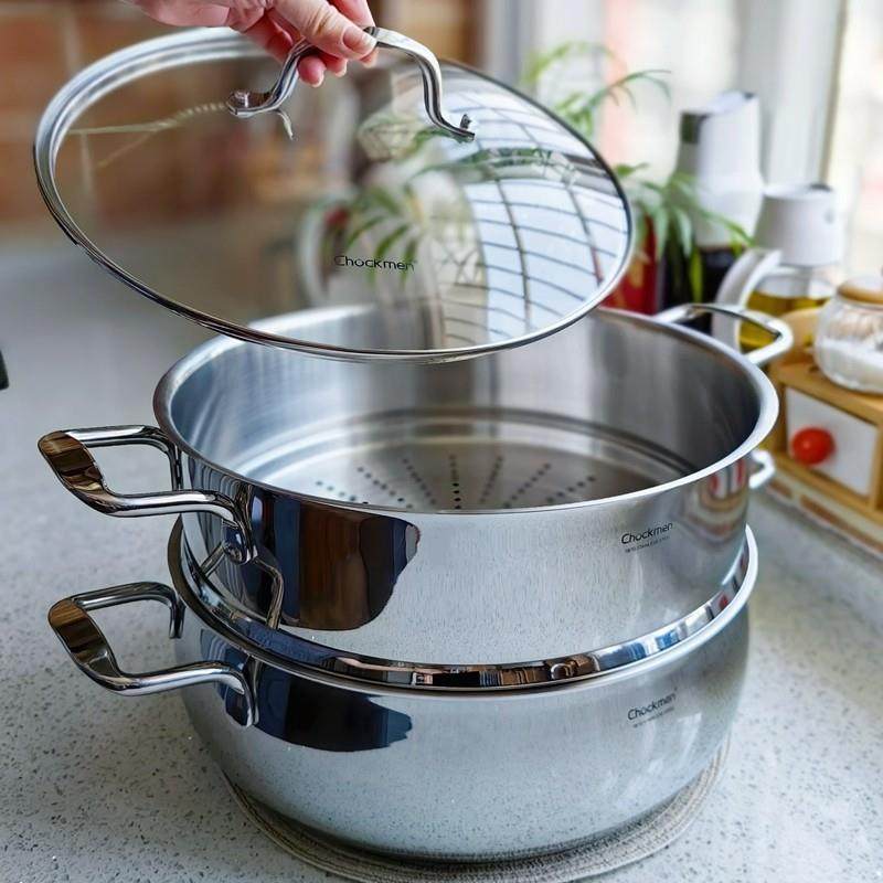 大尺寸加厚18/10不锈钢蒸锅家用蒸馒头火锅电磁炉燃气灶通用28cm