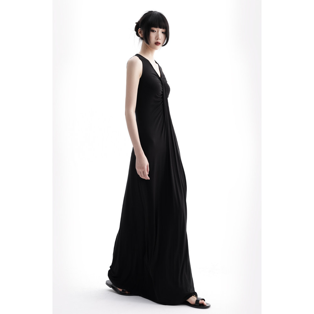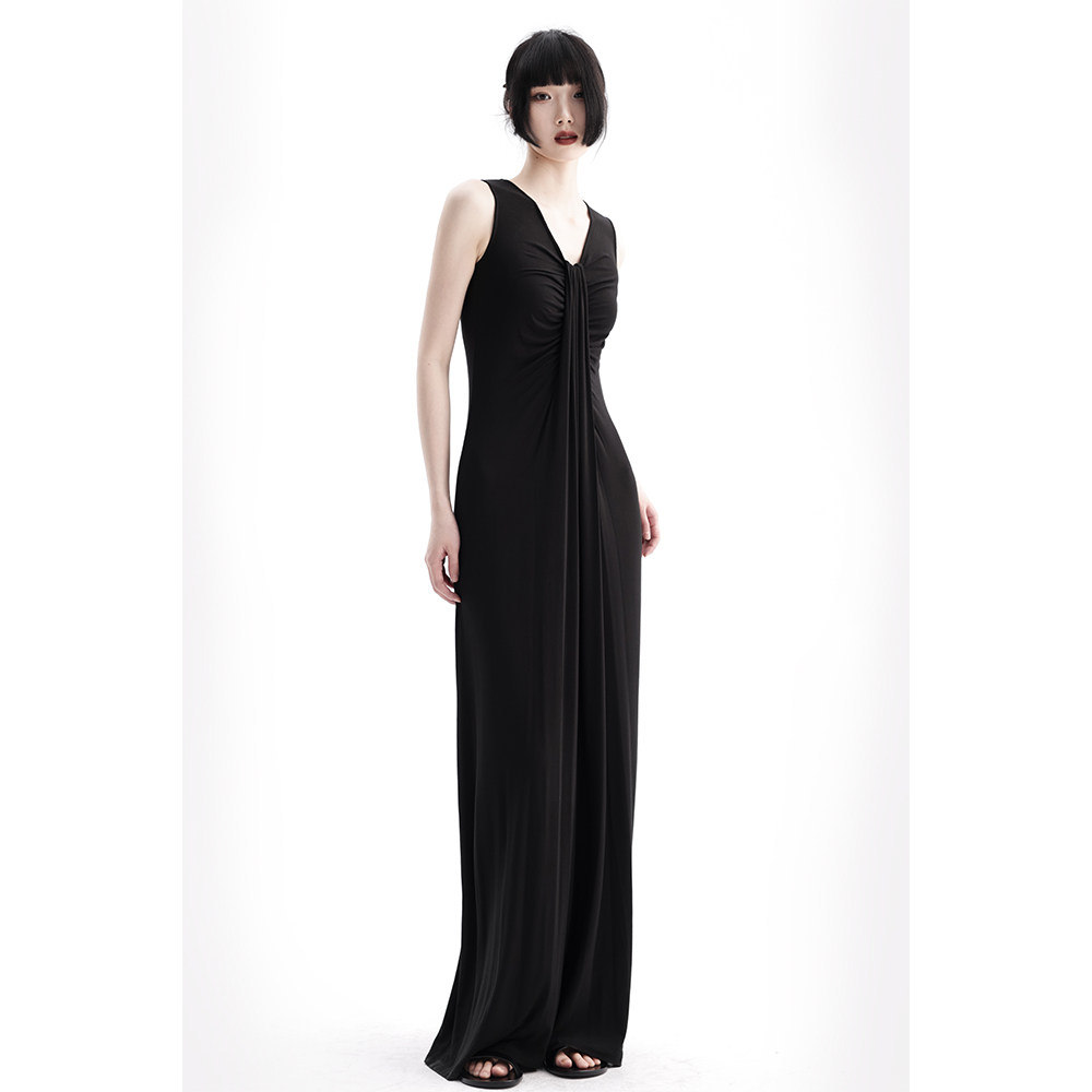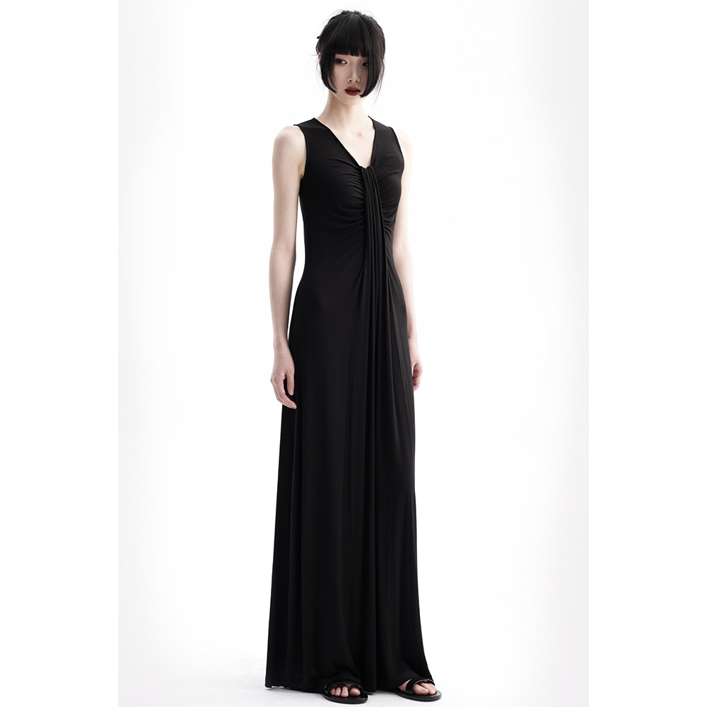 APOZi collection【衍生水墨】夏季黑色长裙背心裙解构褶皱针织裙