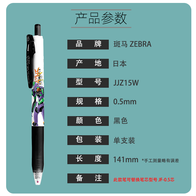 ZEBRA/斑马限定JJ15WEVA新世纪福音战士DIY按动式黑色中性笔水笔