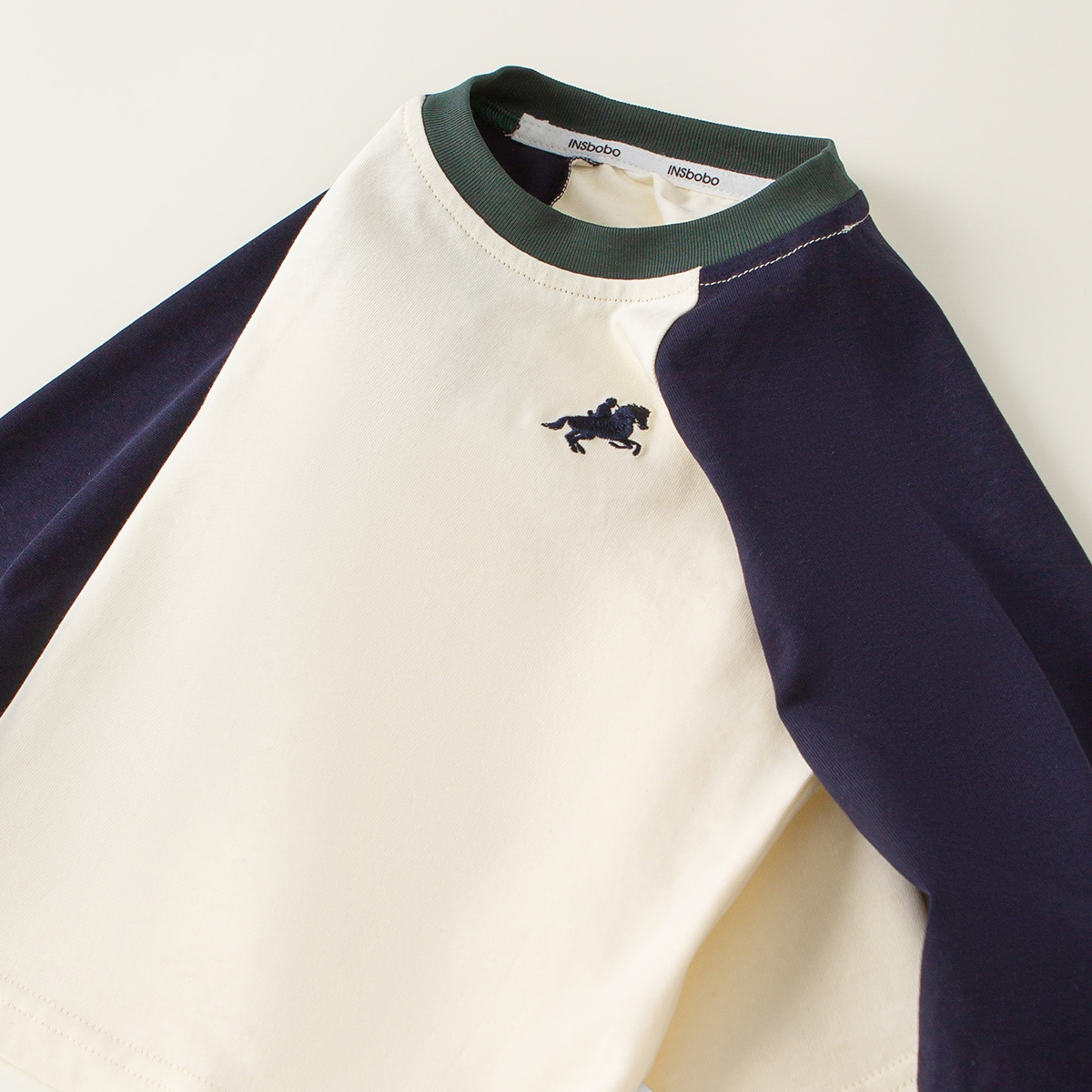 INSbobo儿童T恤女童百搭插肩袖上衣洋气春秋新款男童休闲秋季童装