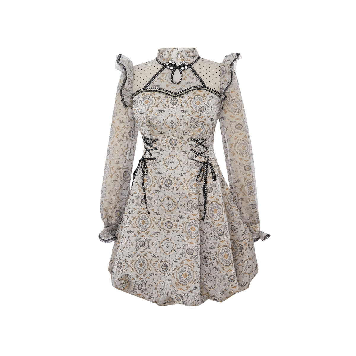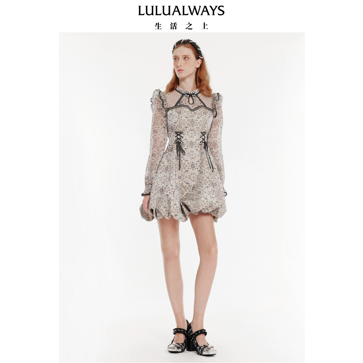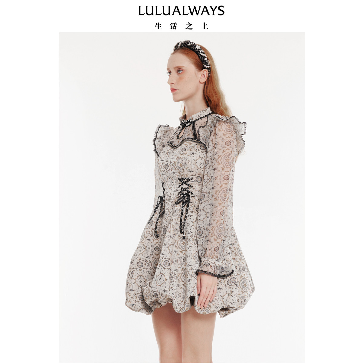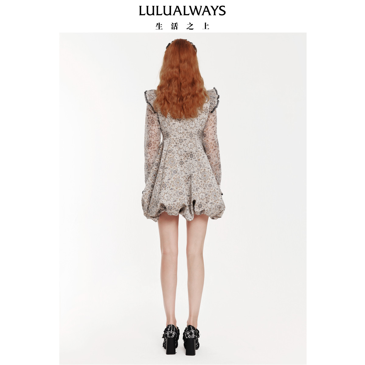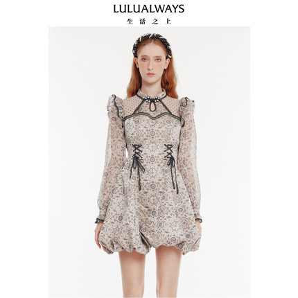 LULUALWAYS我爱露露秋季新款复古宫廷风飞飞袖蓬蓬裙短款连衣裙