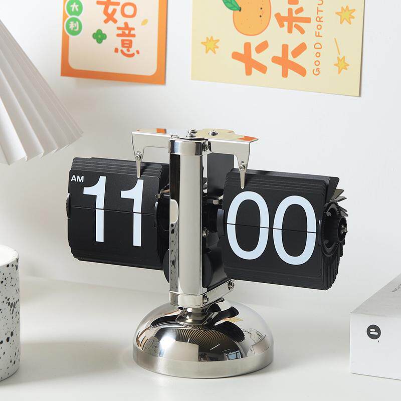 创意自动翻页时钟桌面日历摆件机械表摆台式数字钟表客厅轻奢装饰