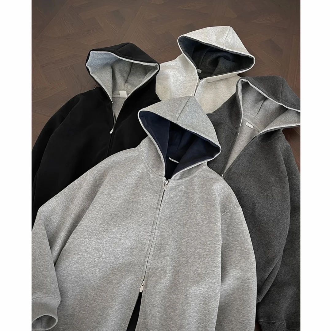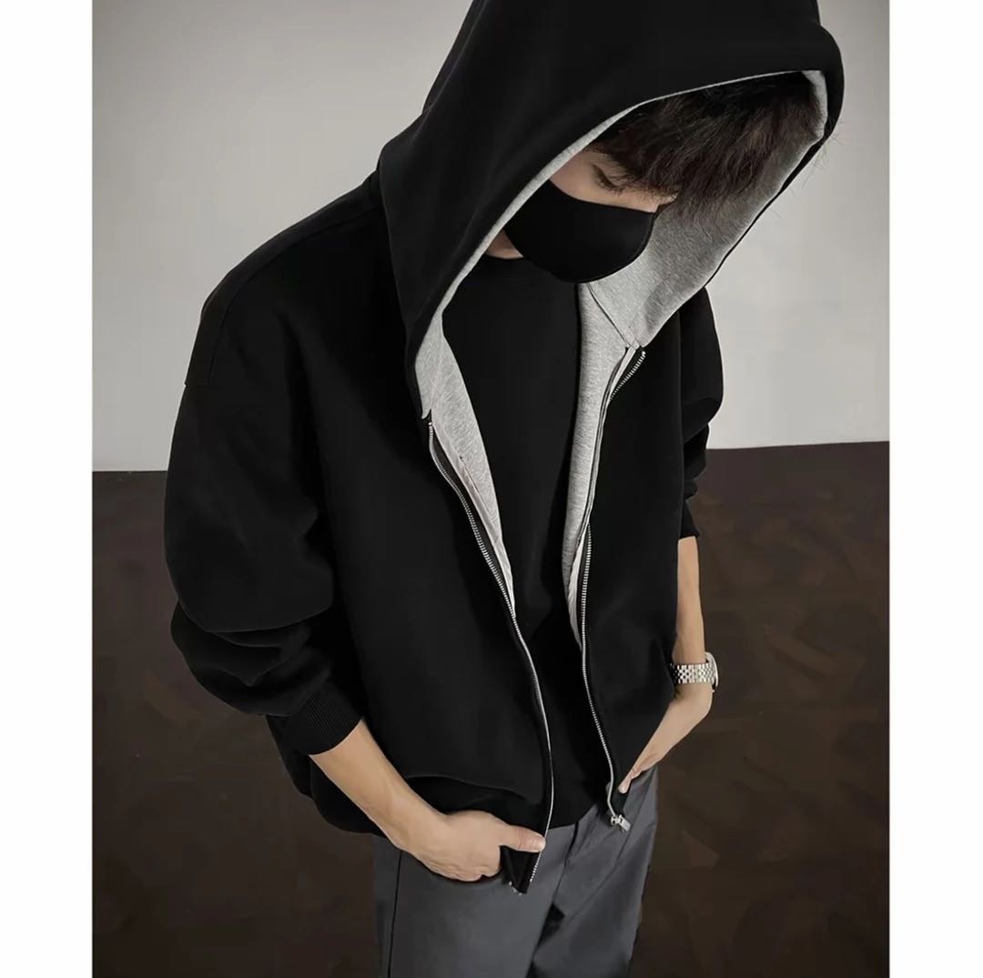 秋冬460G重磅撞色开衫卫衣男女连帽休闲宽松外套百搭运动情侣长袖