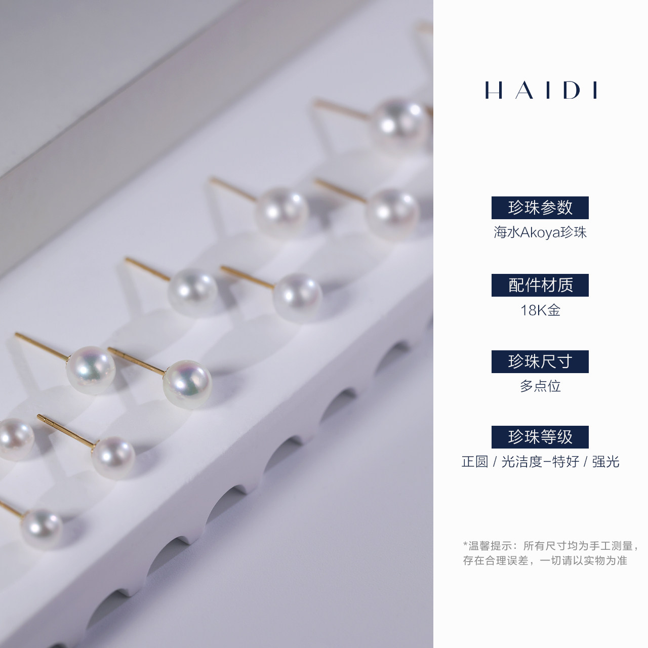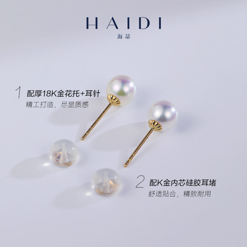 海蒂珠宝 点睛 正圆Akoya小灯泡海水珍珠耳钉女 G18K送女友耳环