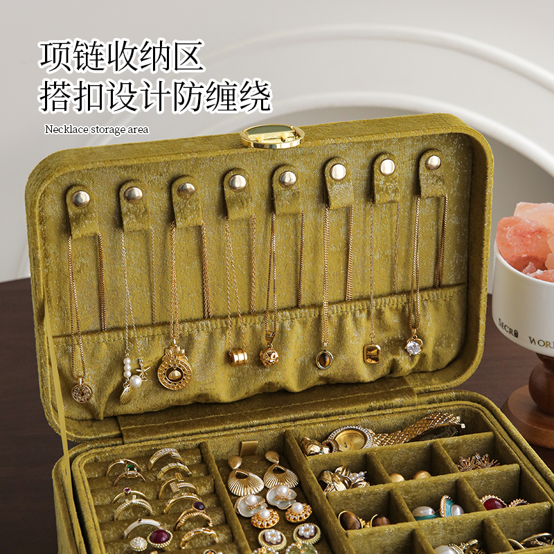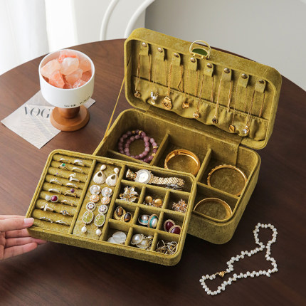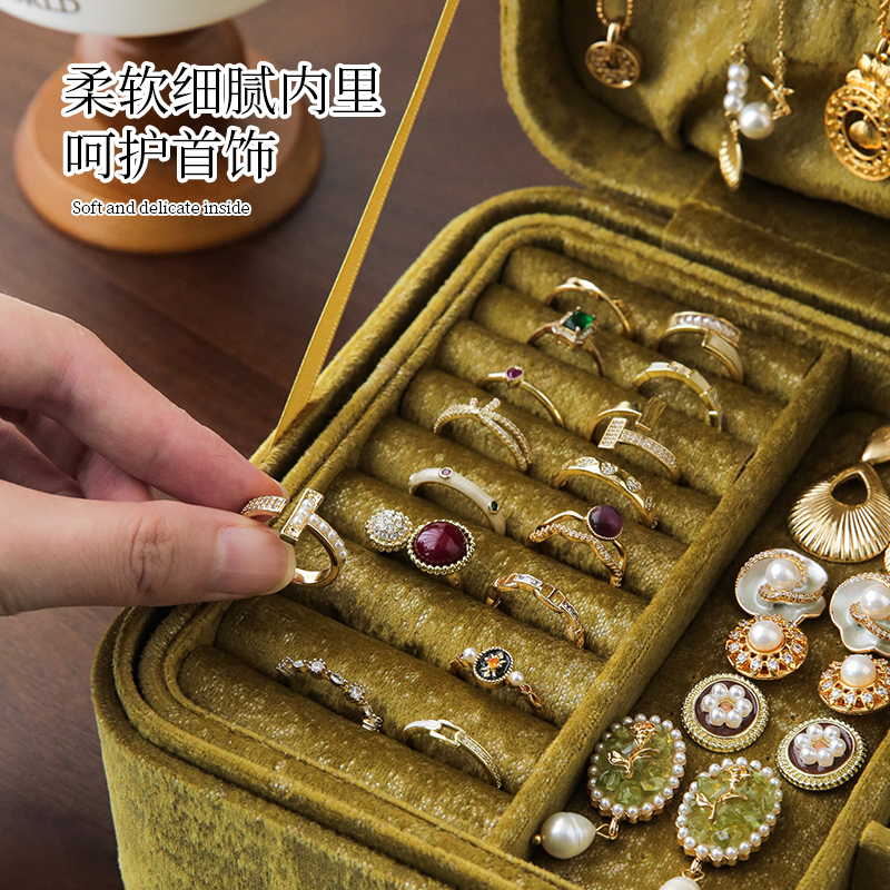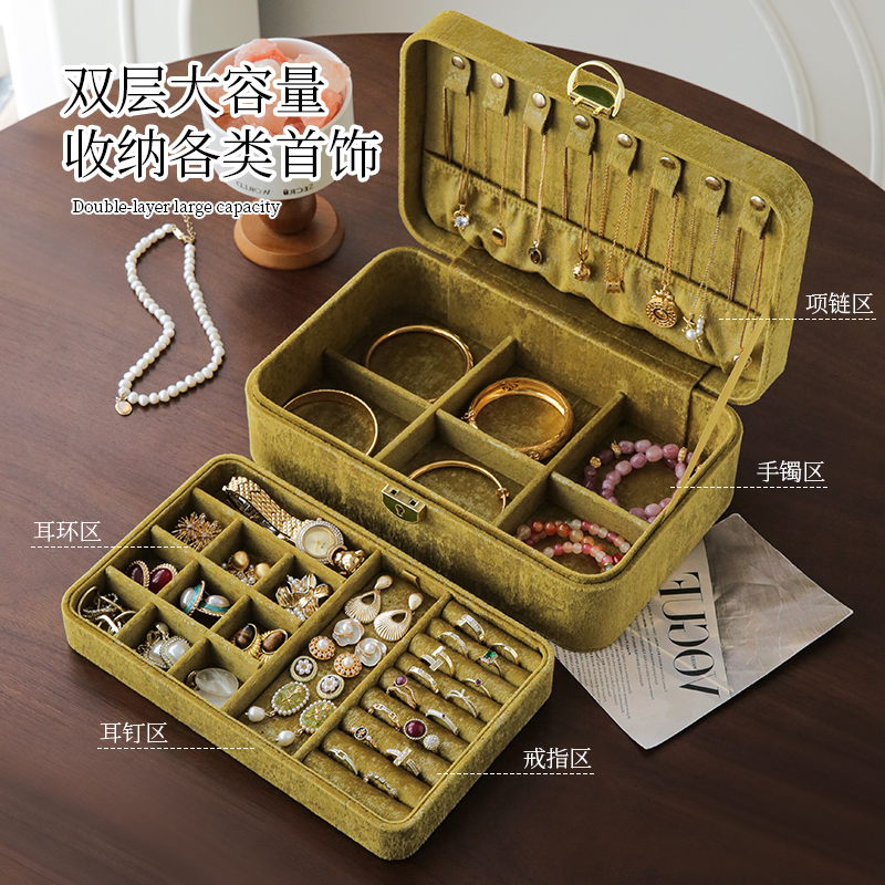 丝绒首饰收纳盒高档精致大容量黄金手饰品项链耳环手镯手串首饰盒
