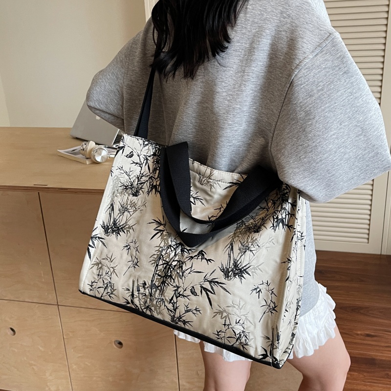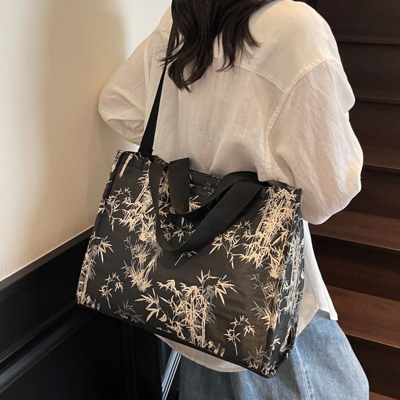 国风刺绣帆布包女大容量外出旅行手提袋单肩斜挎新中式通勤托特包