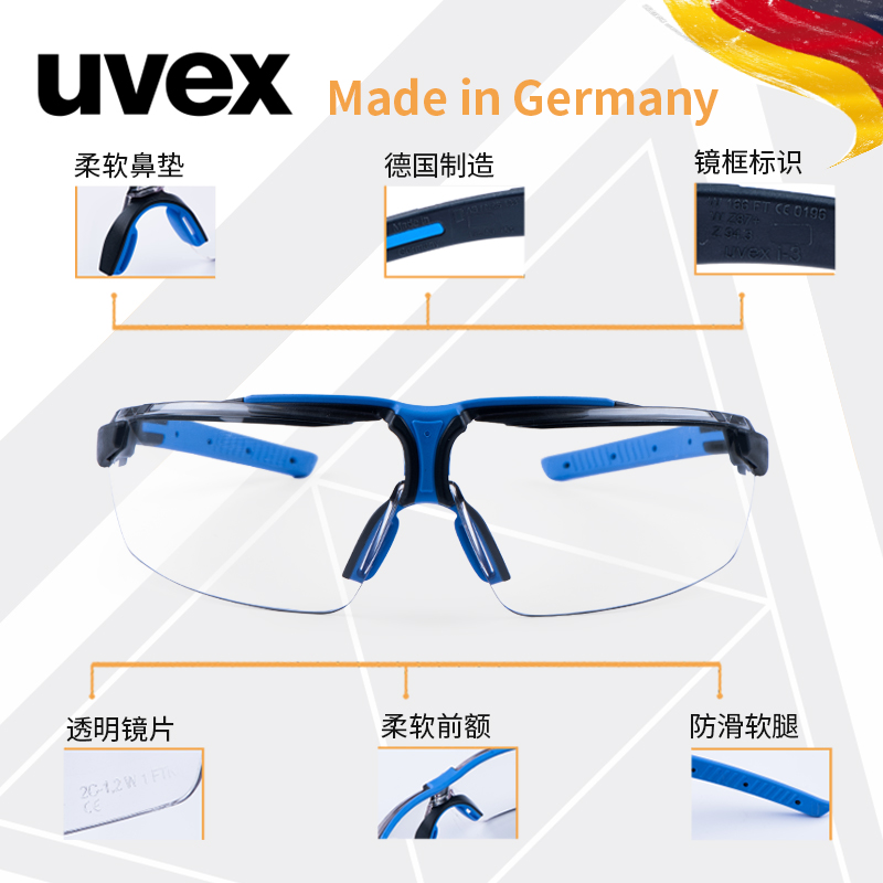 UVEX防飞溅眼镜平光镜透明骑行摩托车劳保防冲击防目护目镜挡风镜