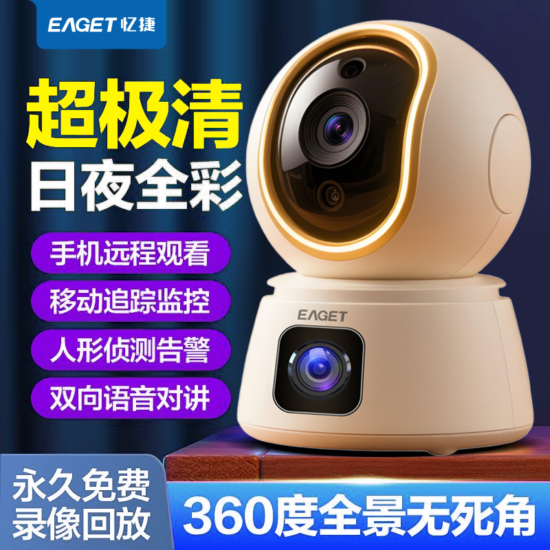 忆捷无线wifi双画面摄像头远程连手机360无死角超高清室内全彩