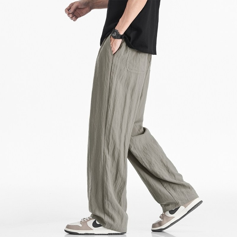 Jasonwood 亚麻直筒裤男生薄款夏季2025新款棉麻速干宽松阔腿裤子