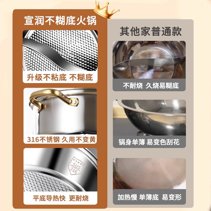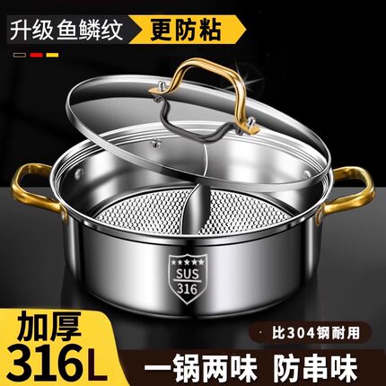 苏泊尔有太316不锈钢鸳鸯火锅家用电磁炉专用加厚火锅盆汤锅涮锅