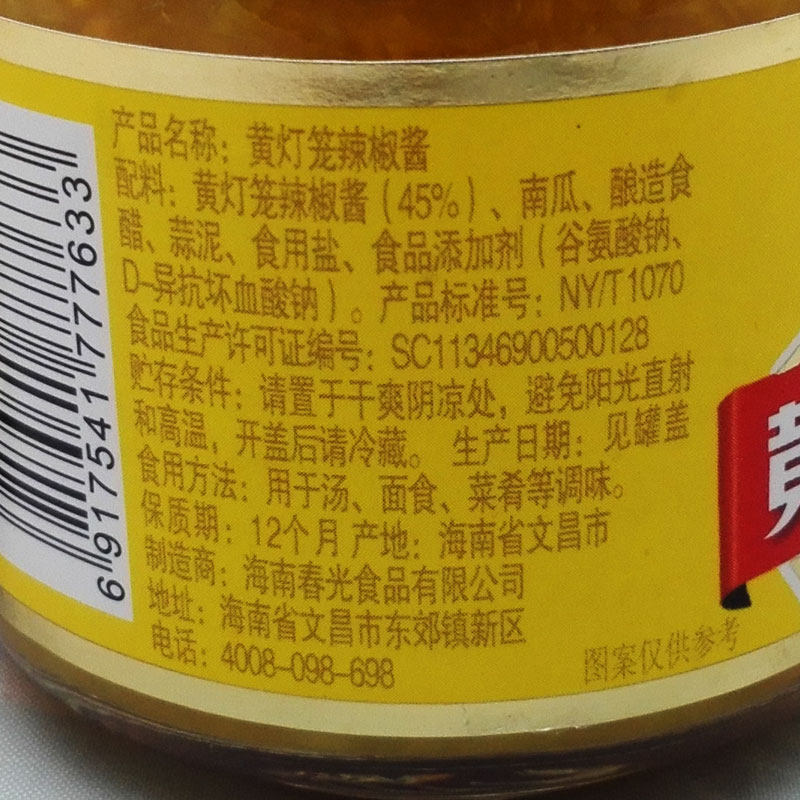 春光特辣黄灯笼辣椒酱无油0脂肪