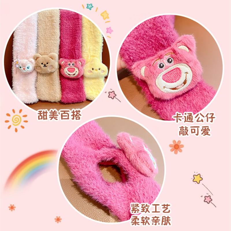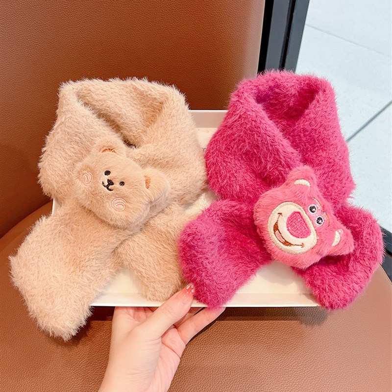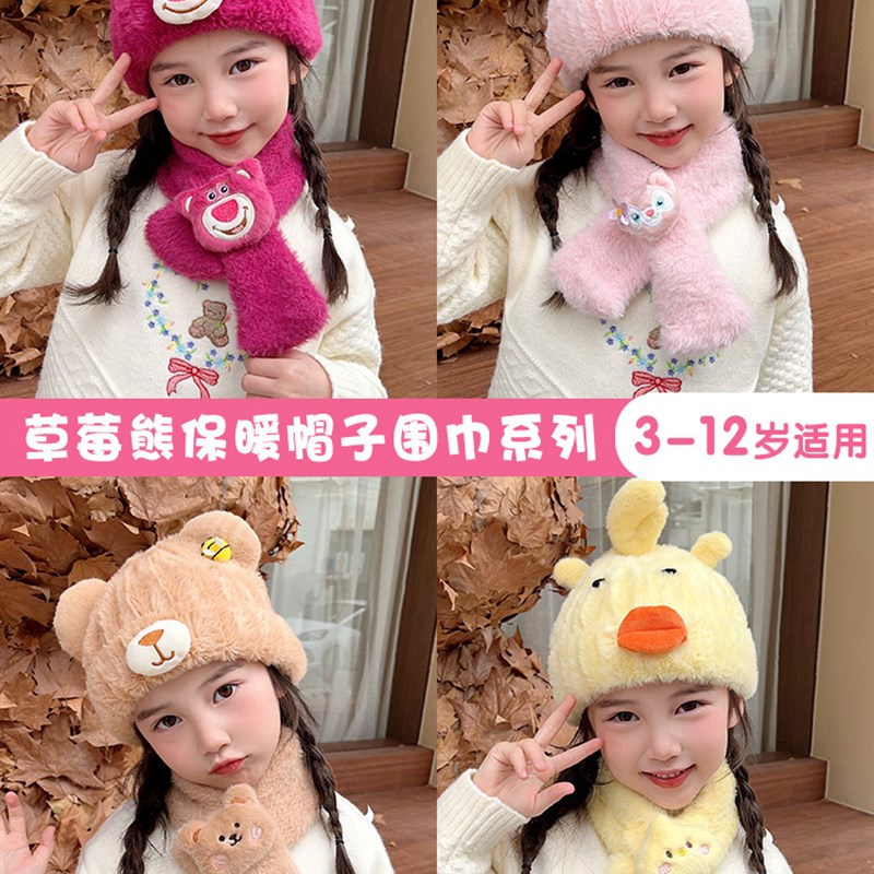 儿童草莓熊围巾冬季2023新款男女童毛绒保暖围脖帽子宝宝防风脖套