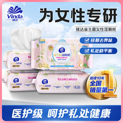 维达益生菌湿厕纸女士专用私处清洁湿厕巾经期清洁湿巾60抽