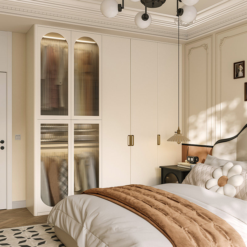 索菲亚全屋定制家用卧室走入式衣柜整体衣帽间玻璃收纳柜法式缇娅