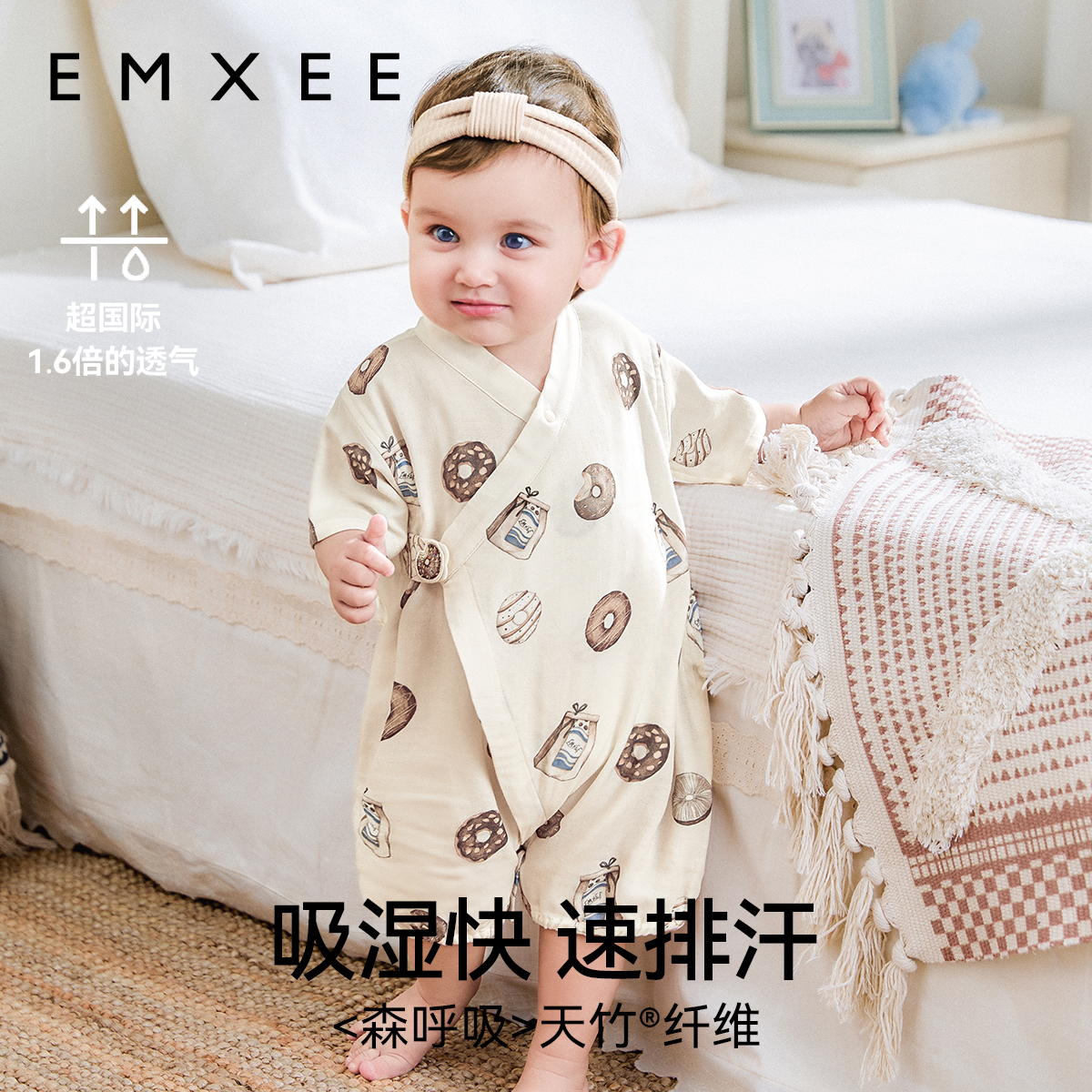 嫚熙果果衣婴儿衣服连体衣夏季薄款短袖纱罗宝宝新生儿爬服和尚服