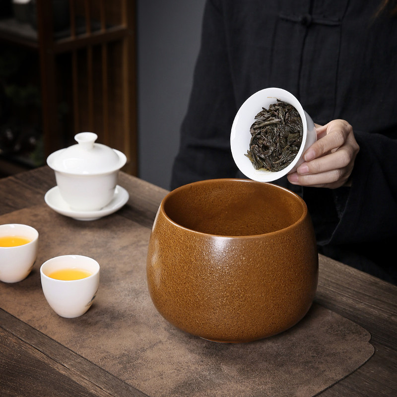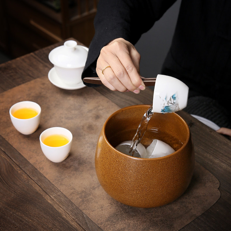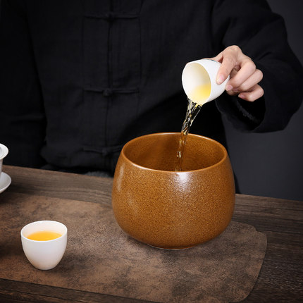 高端茶洗茶渣缸陶瓷建水铁锈小大号水盂废水桶烟灰缸茶水缸茶点盘