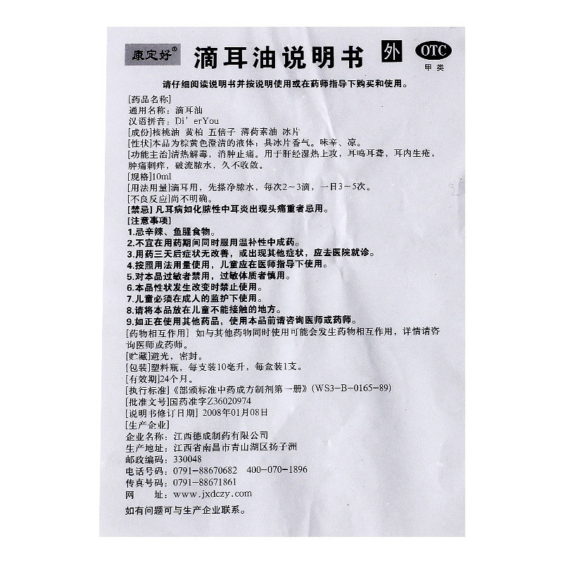 康定好滴耳油专用中耳炎滴耳液除根耳朵耳鸣嗡嗡响流脓发炎