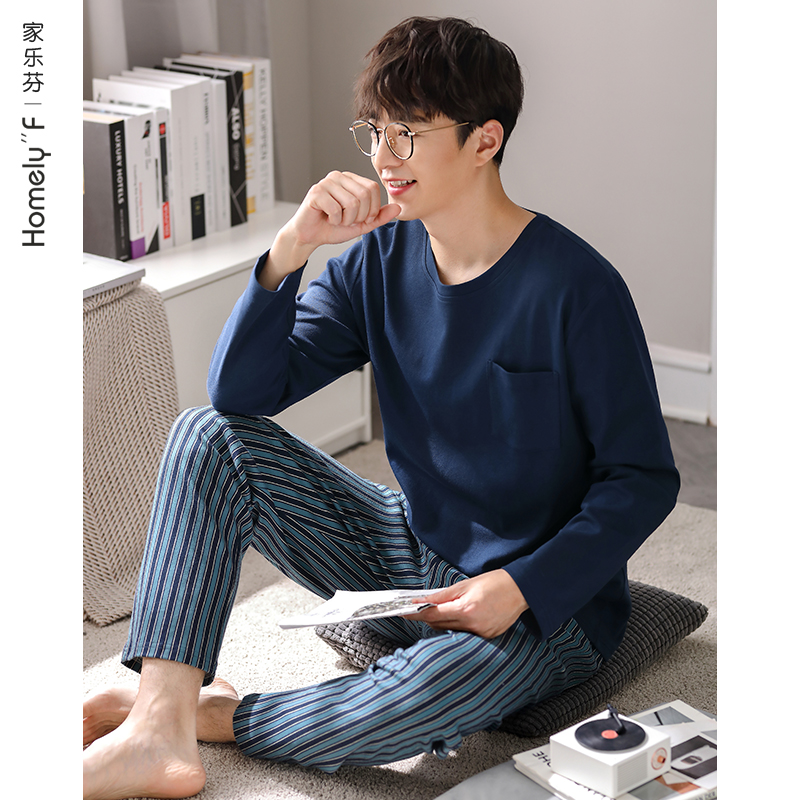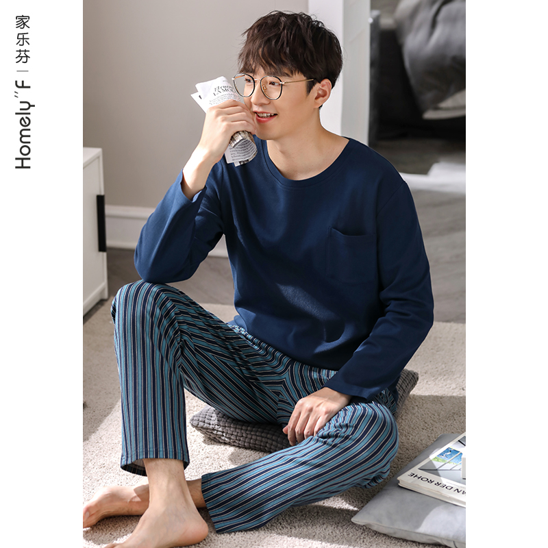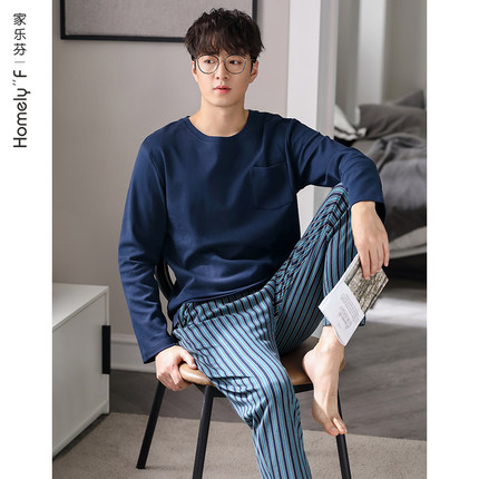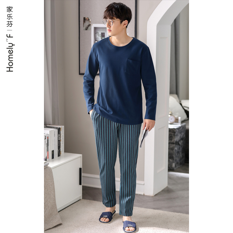 家乐芬睡衣男士春秋季秋款纯棉长袖家居服男款四季款大码薄款套装