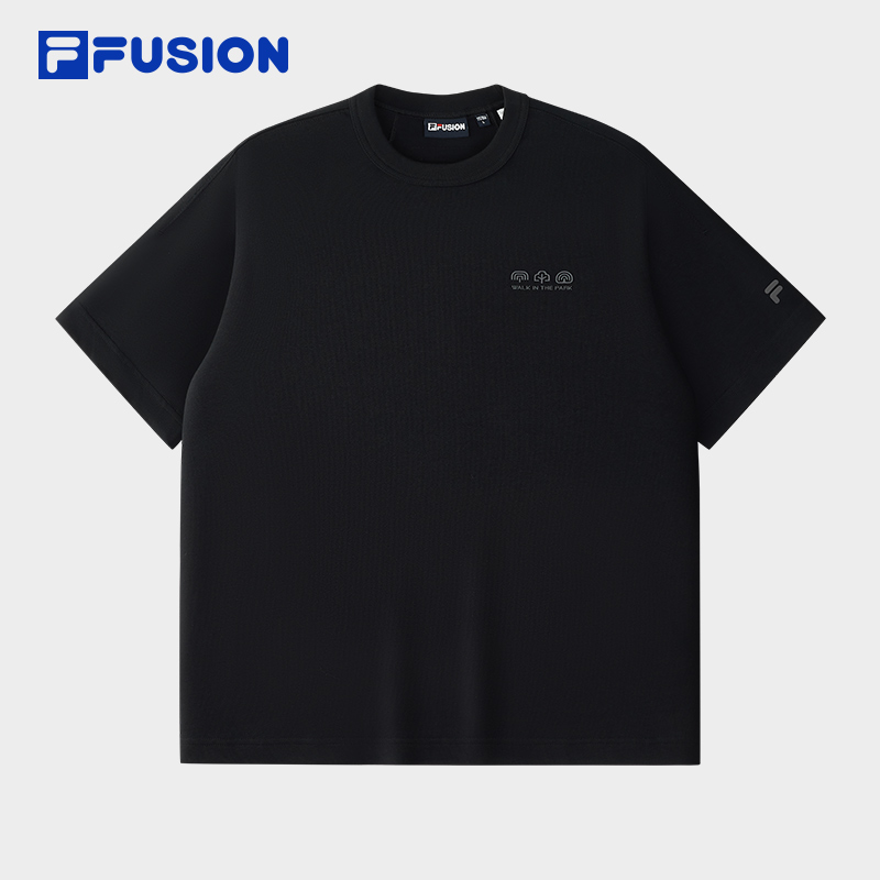 FILA FUSION斐乐潮牌男子针织短袖衫2025冬季新款休闲纯棉宽松T恤