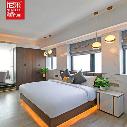 工厂酒店家具相遇时光酒店客房成套卧室家具舒适实木双人床家居
