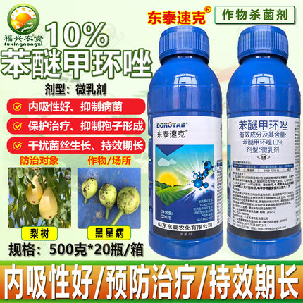 东泰速克10%苯醚甲环唑微乳剂梨树黑星病真菌病害内吸杀菌剂 农药