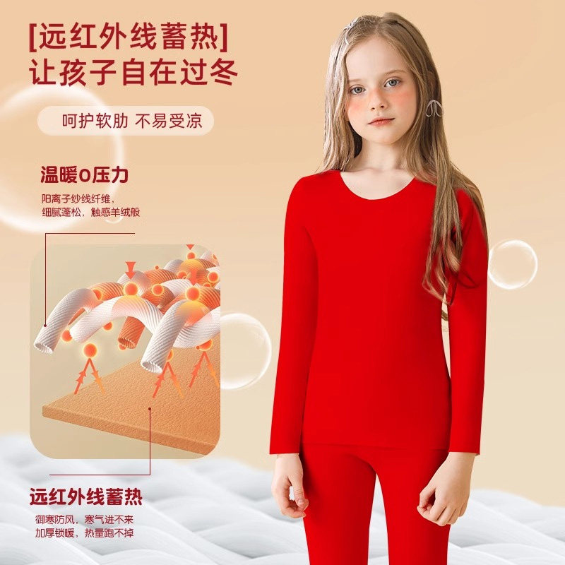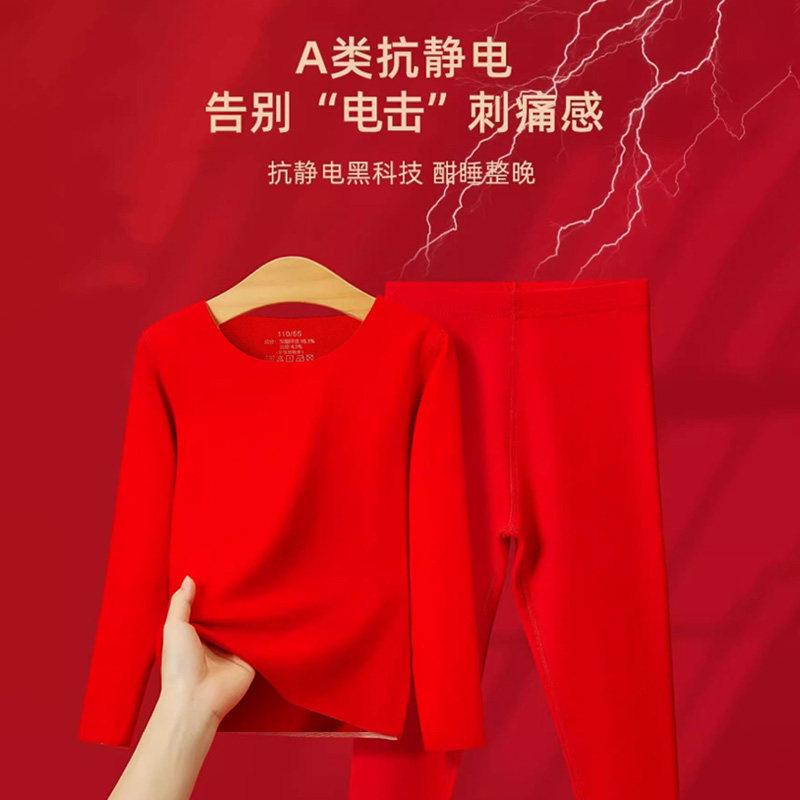 儿童本命年无痕保暖内衣2025蛇年12岁男女童红色纯棉秋衣秋裤套装
