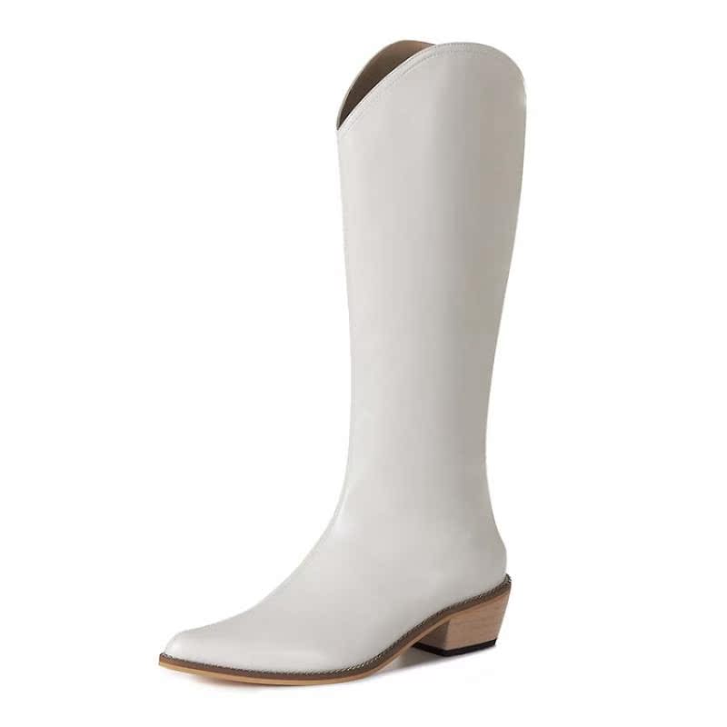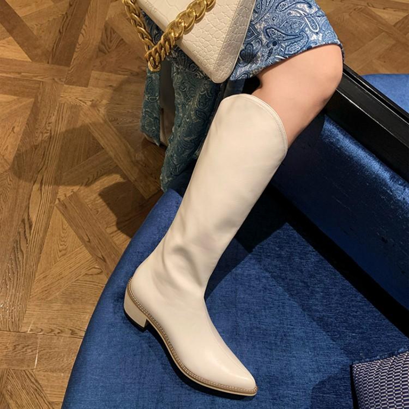 Hunnz复古西部靴牛仔靴秋冬新款高靴尖头粗跟骑士靴女不过膝长靴
