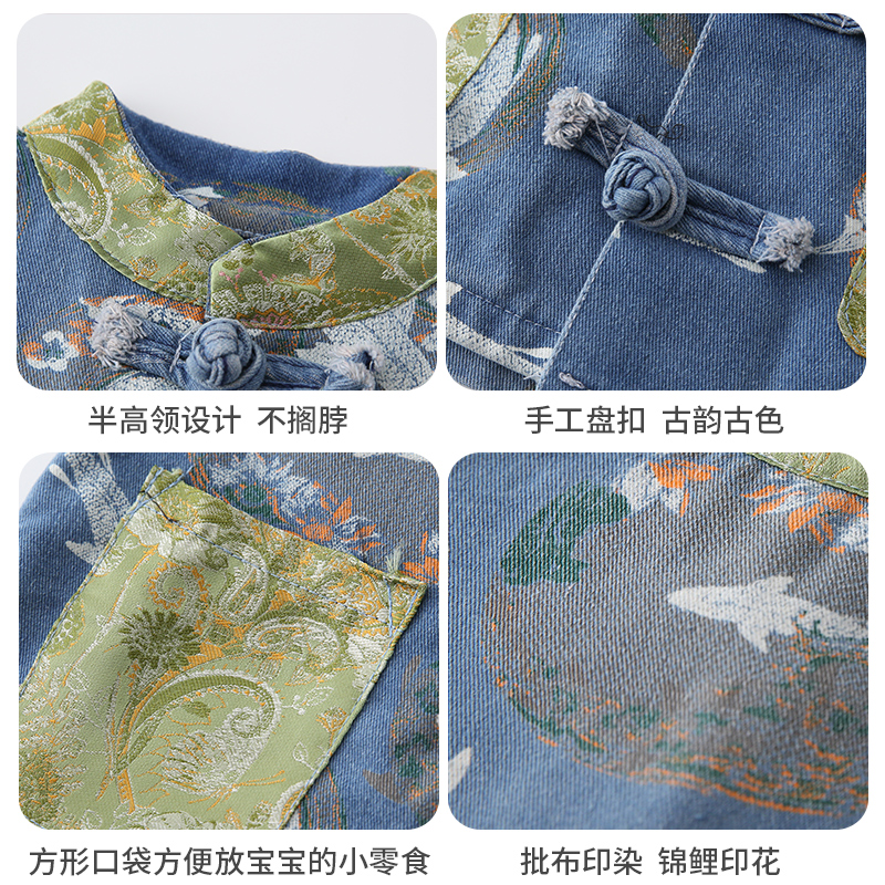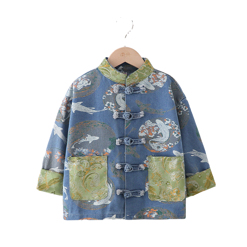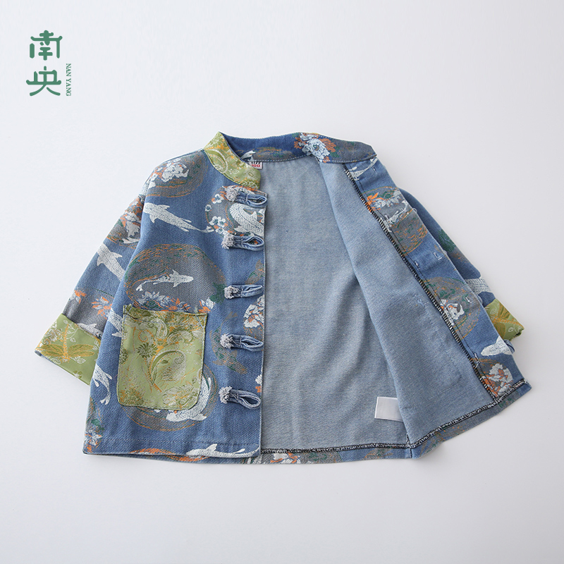 新中式童装国风汉服男童牛仔外套春秋季儿童唐装长袖上衣男孩国潮