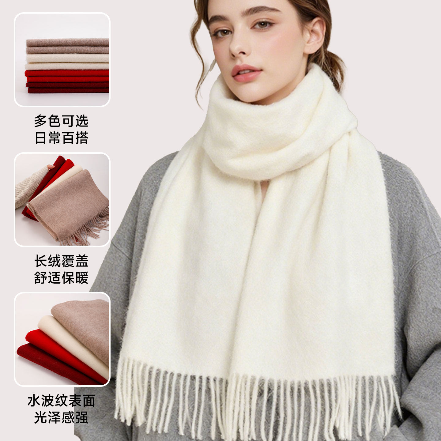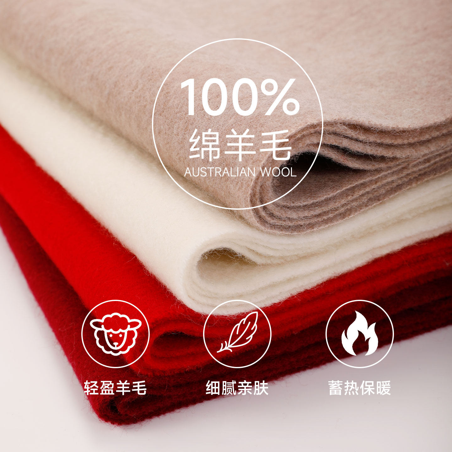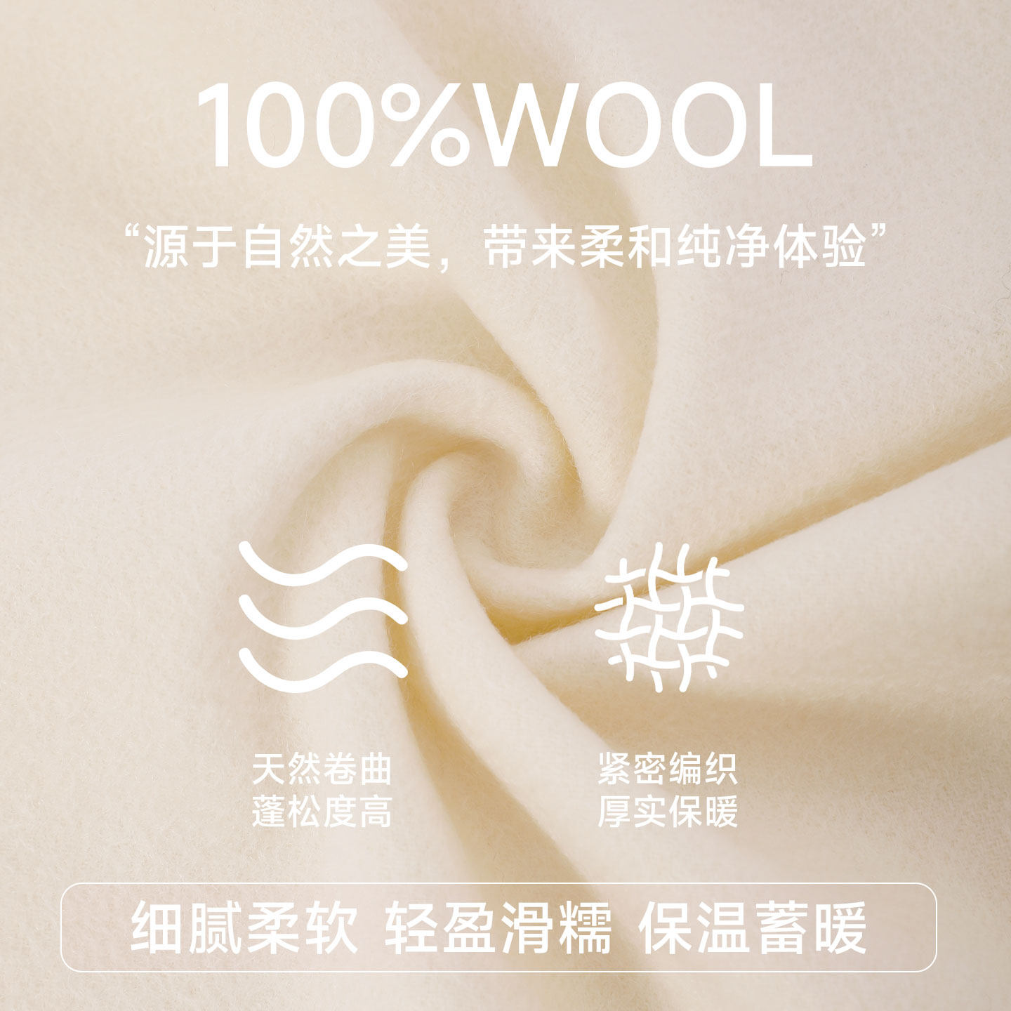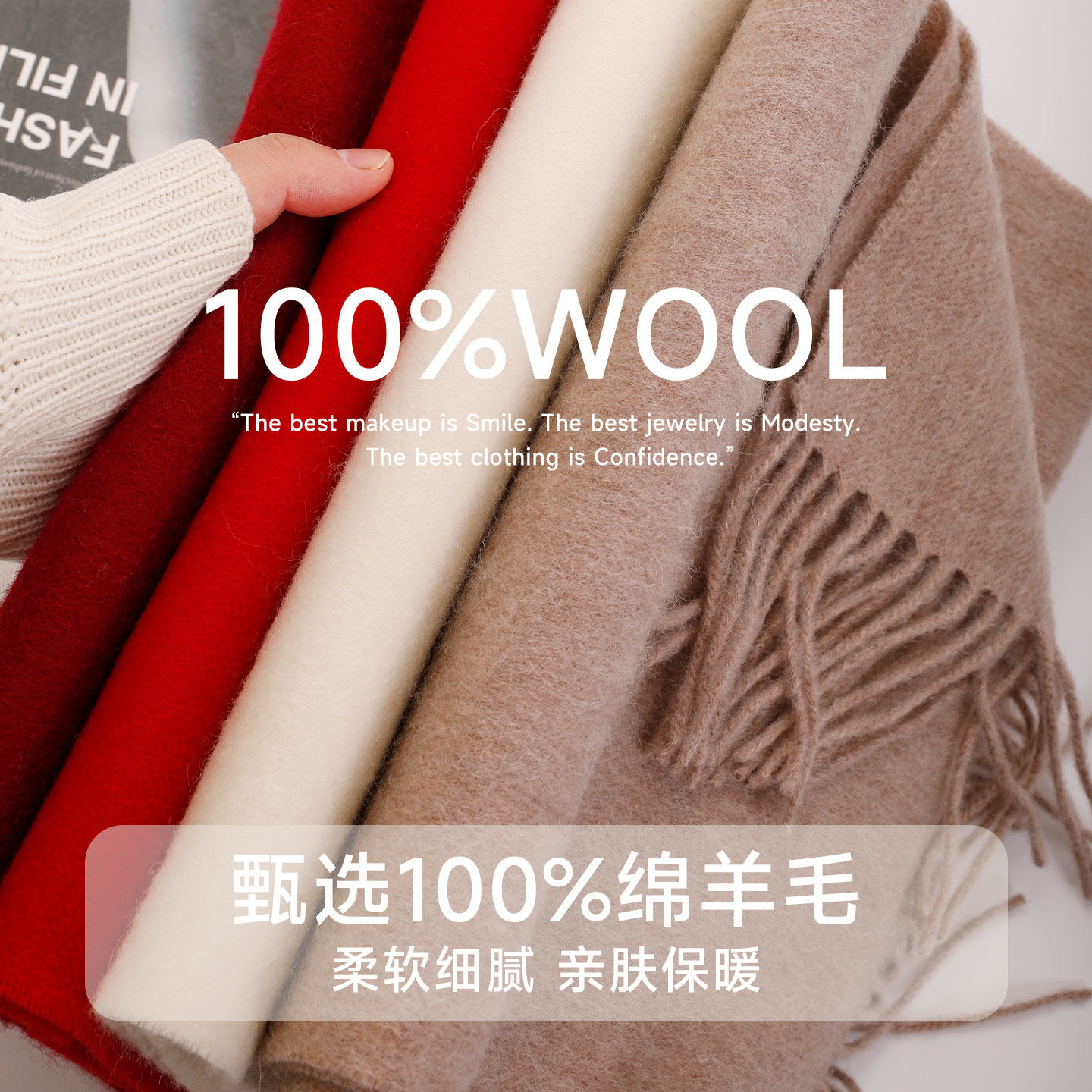 稻草人100%纯羊毛围巾女冬季2025新款高级感保暖纯色百搭流苏围脖