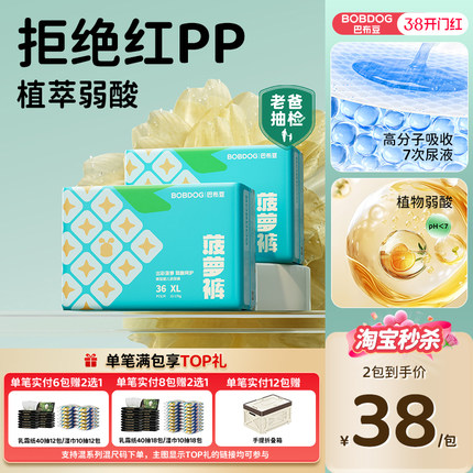 【淘秒】巴布豆菠萝裤超薄透气拉拉裤干爽婴儿纸尿裤尿不湿2包