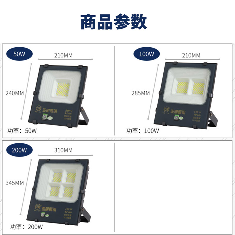 上海亚明纳米LED投光灯100W工地泛光灯50瓦射灯200W户外防水超亮