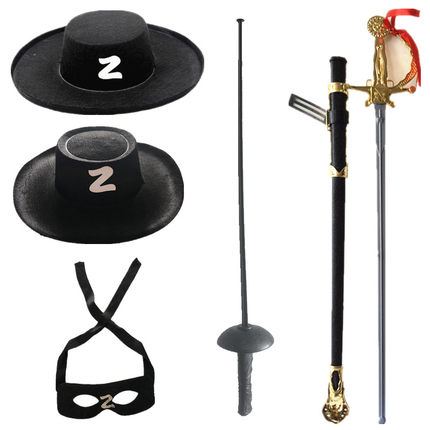万圣节派对表演道具帽子 佐罗剑佐罗眼罩 服装帽子 佐罗帽