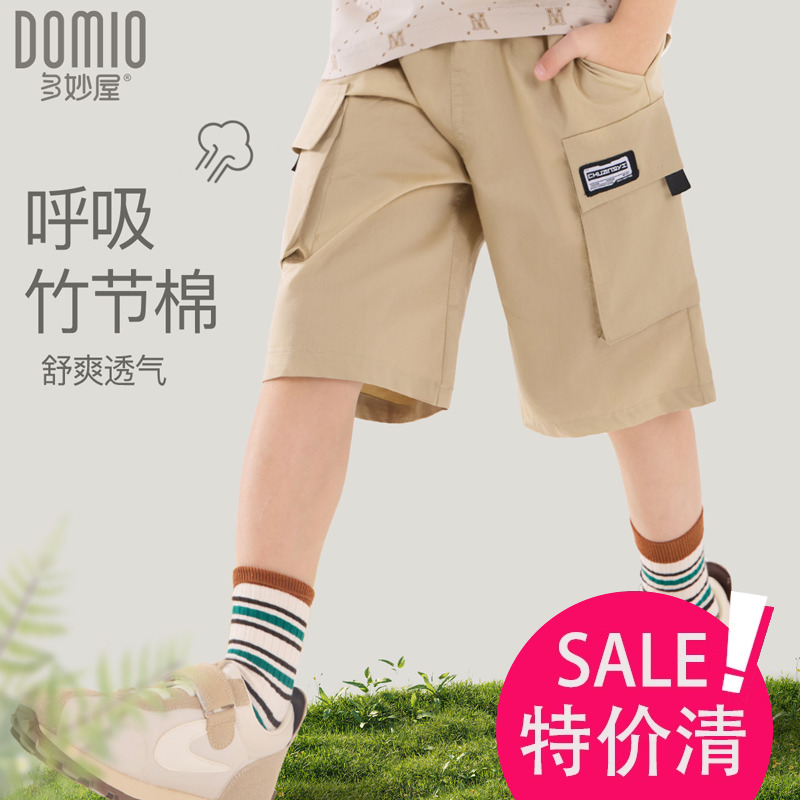 男童夏季工装中裤竹节棉透气中大童五分裤宽松短裤2024夏装裤子