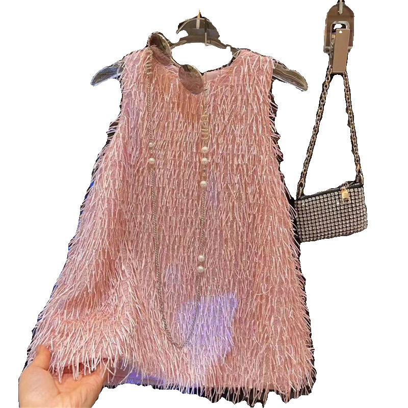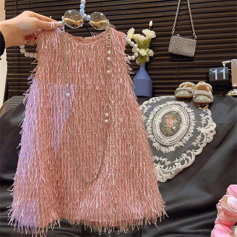 2025夏款儿童公主裙小香风流苏连衣裙女童夏圆领背心裙生日礼服裙