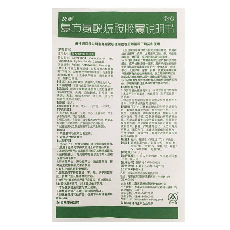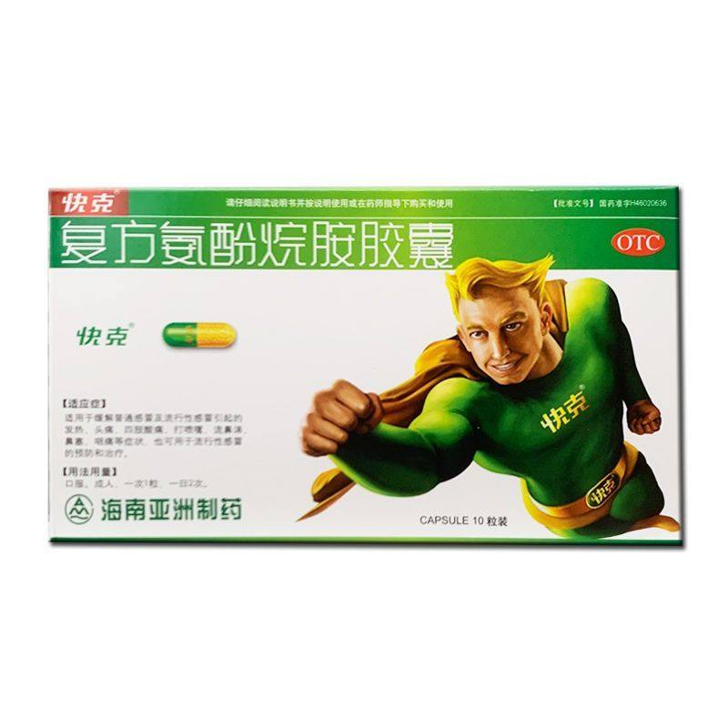 快克复方氨酚烷胺胶囊10粒普通感冒及流行性感冒发热头痛感冒药ZM
