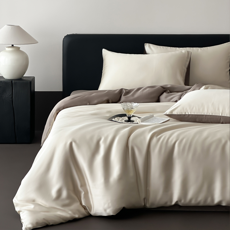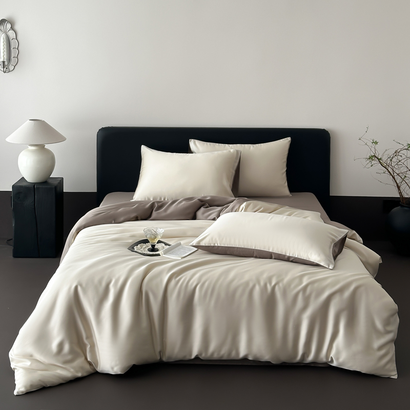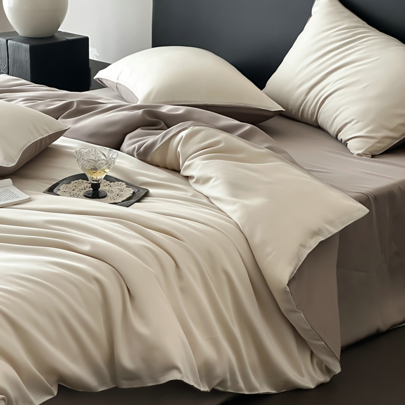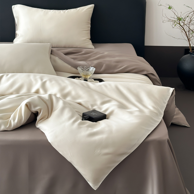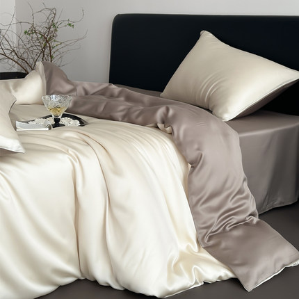 简约纯色60S丝滑天丝四件套裸睡贡缎被套床单笠冰丝床上用品夏季