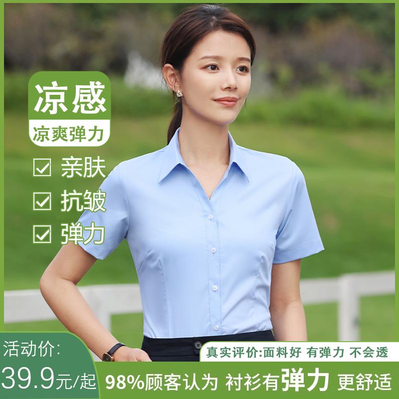 彩屹白衬衫女夏季短袖工作服竹纤维气质V领半袖2025新款洋气正装