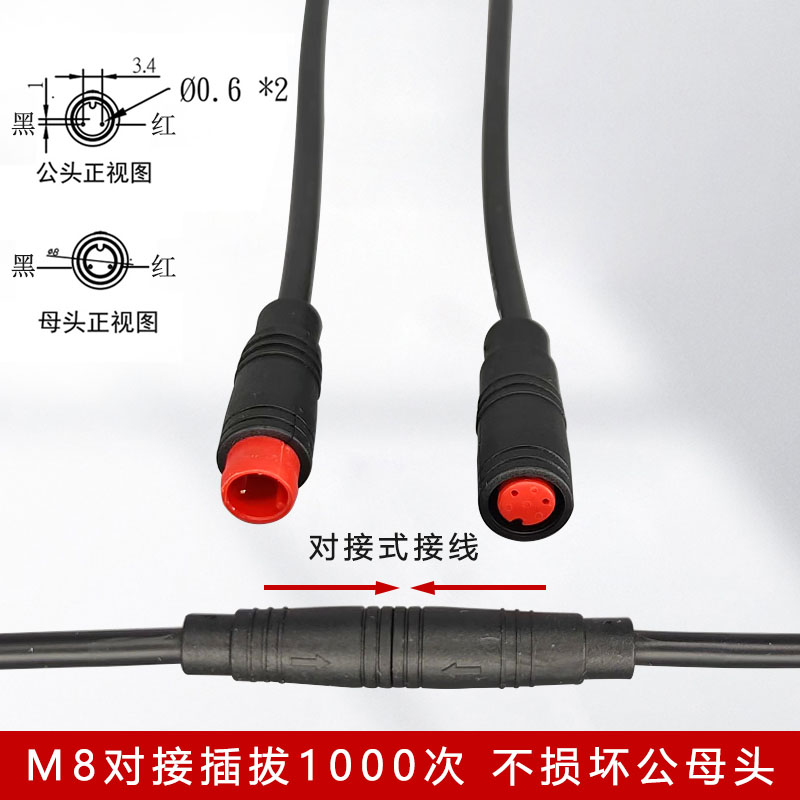 M8防水公母插头航空带线快速对接端子户外led汽车电源线235芯插座