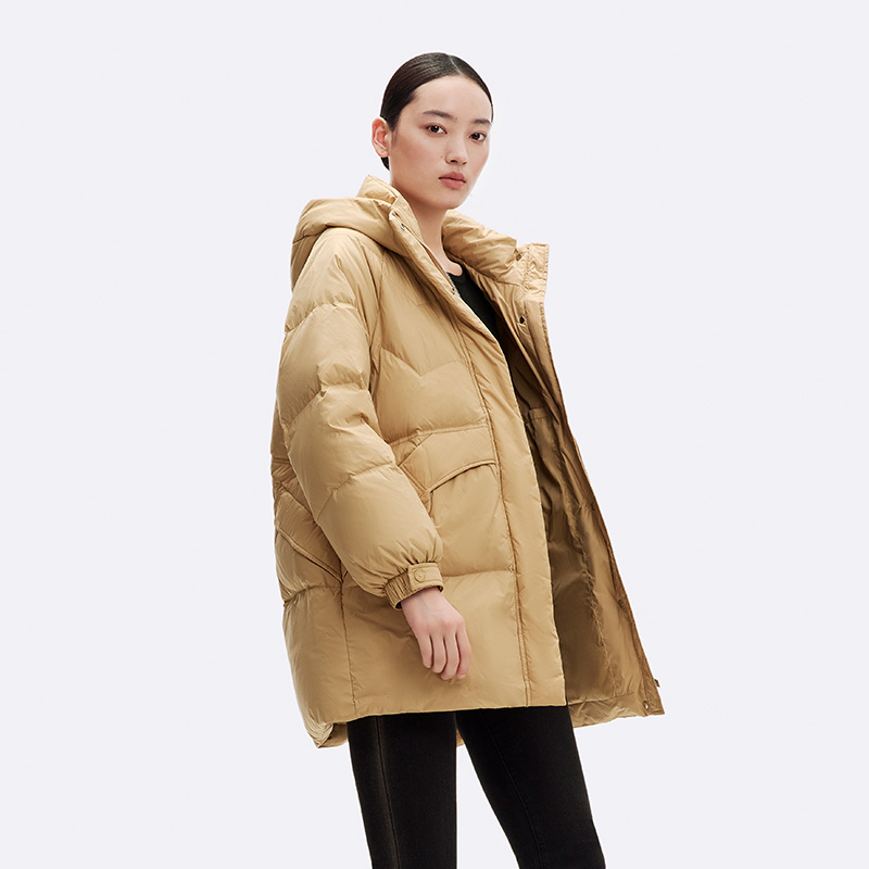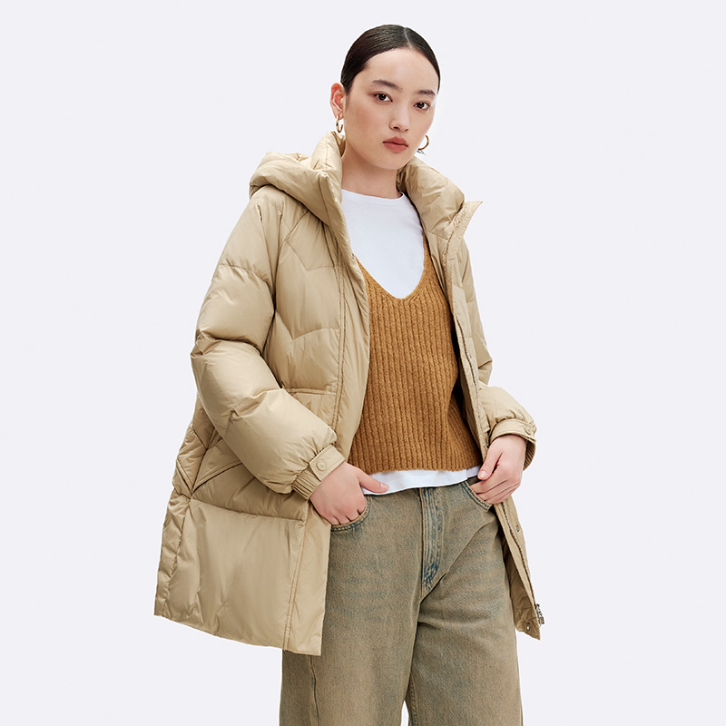 千仞岗冬季女士中长款连帽宽松廓形羽绒服美拉德色系加厚