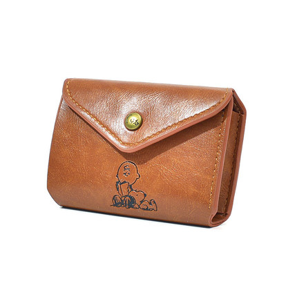 史努比卡通短款钱包女日韩风大容量三折按扣PU皮零钱包