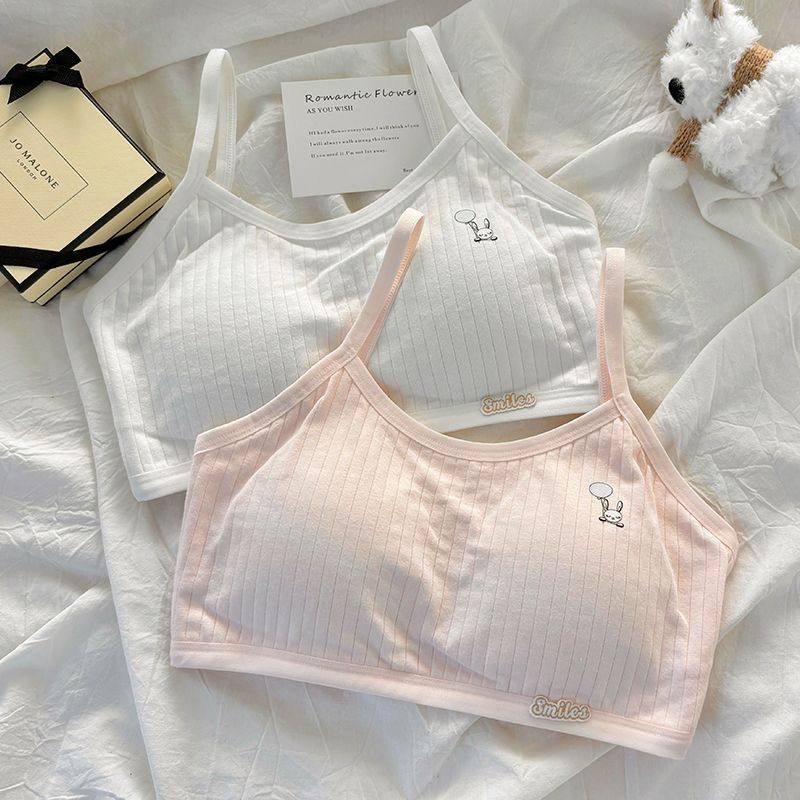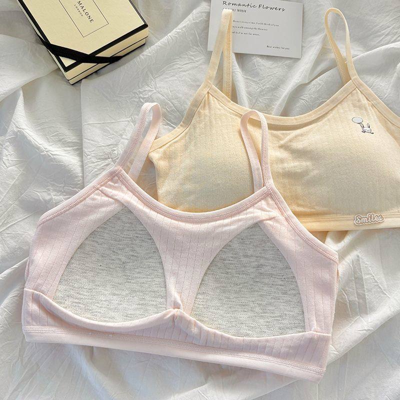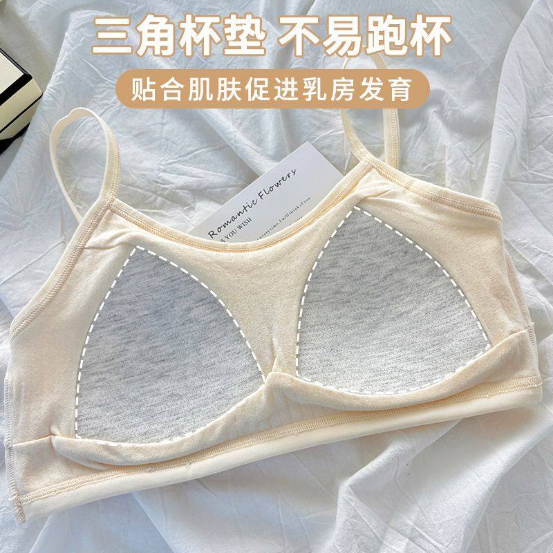 安心猫纯棉内衣女发育期固定杯显小胸吊带小背心学生抹胸少女文胸