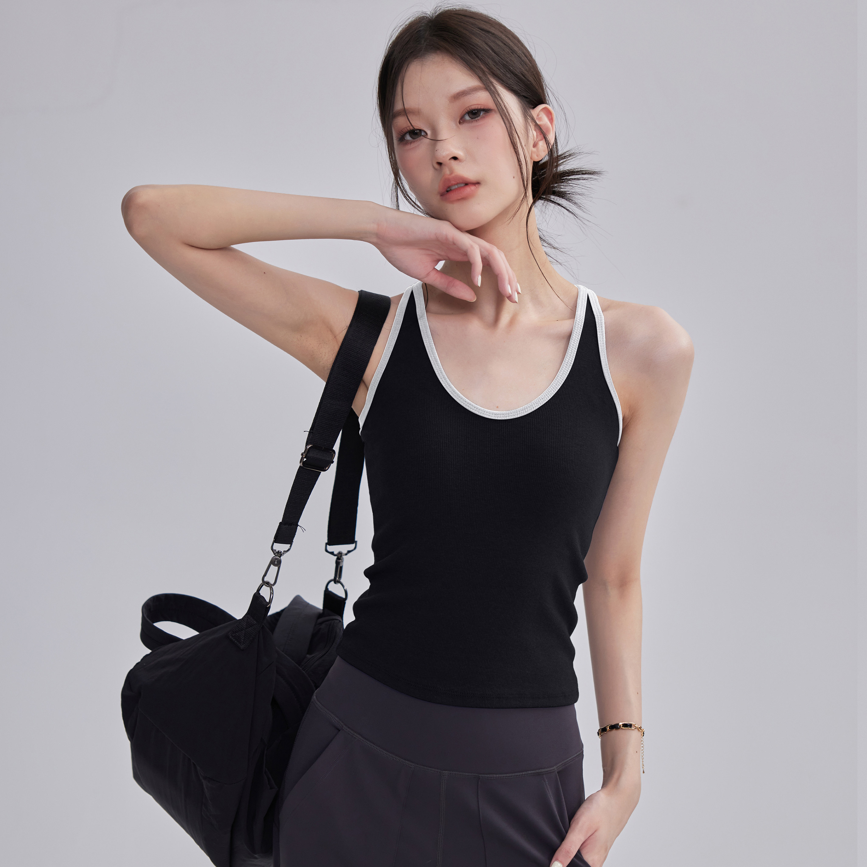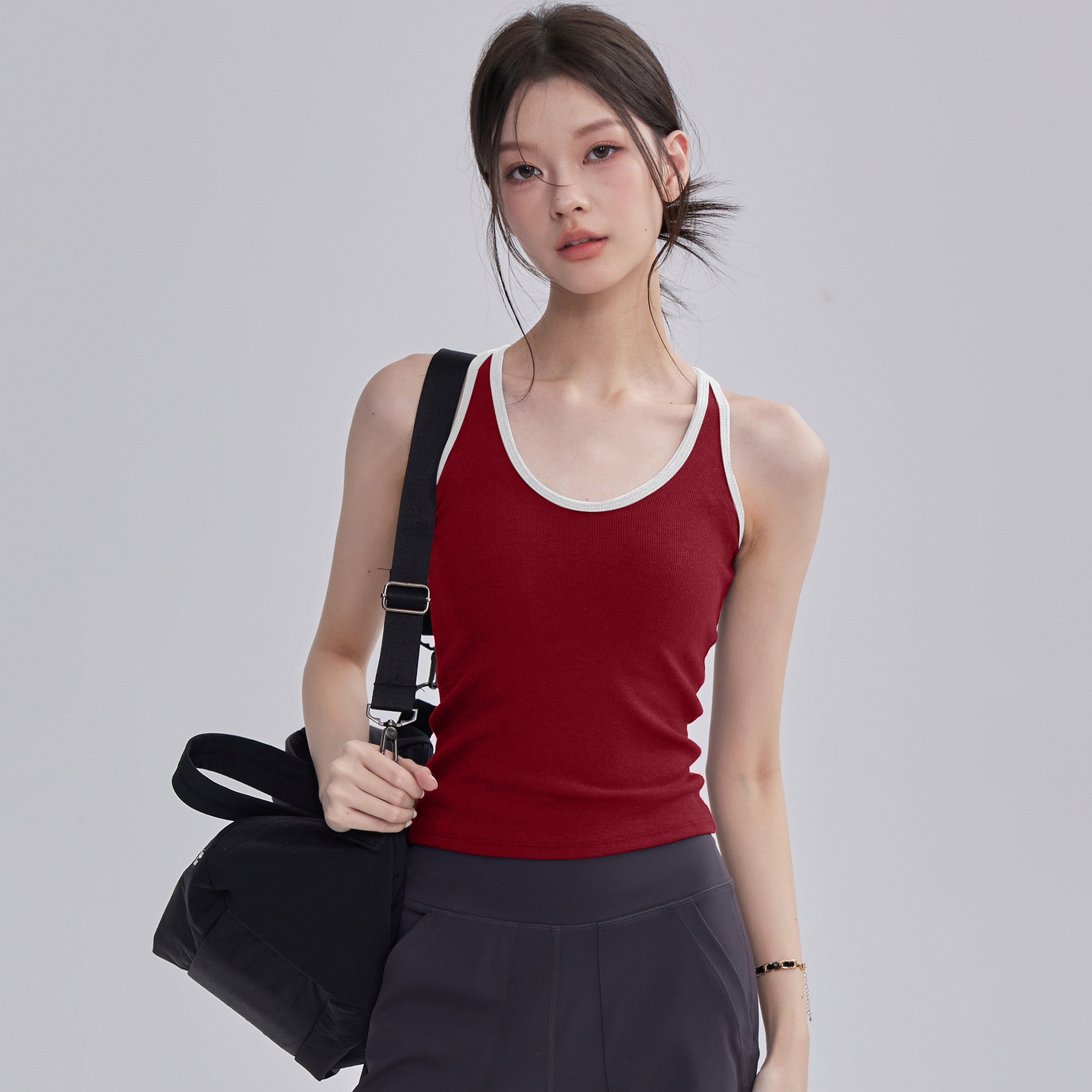 运动吊带背心女外穿撞色显瘦上衣