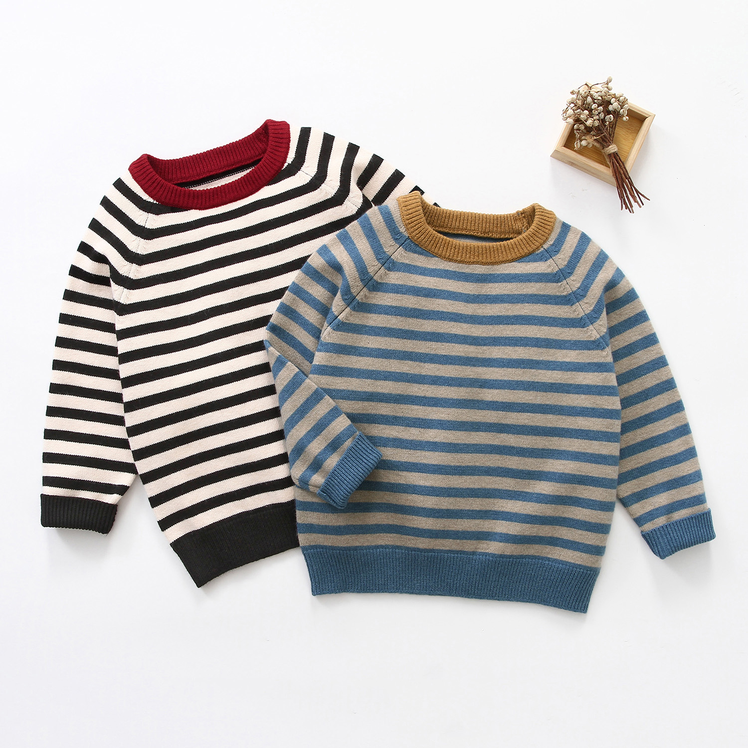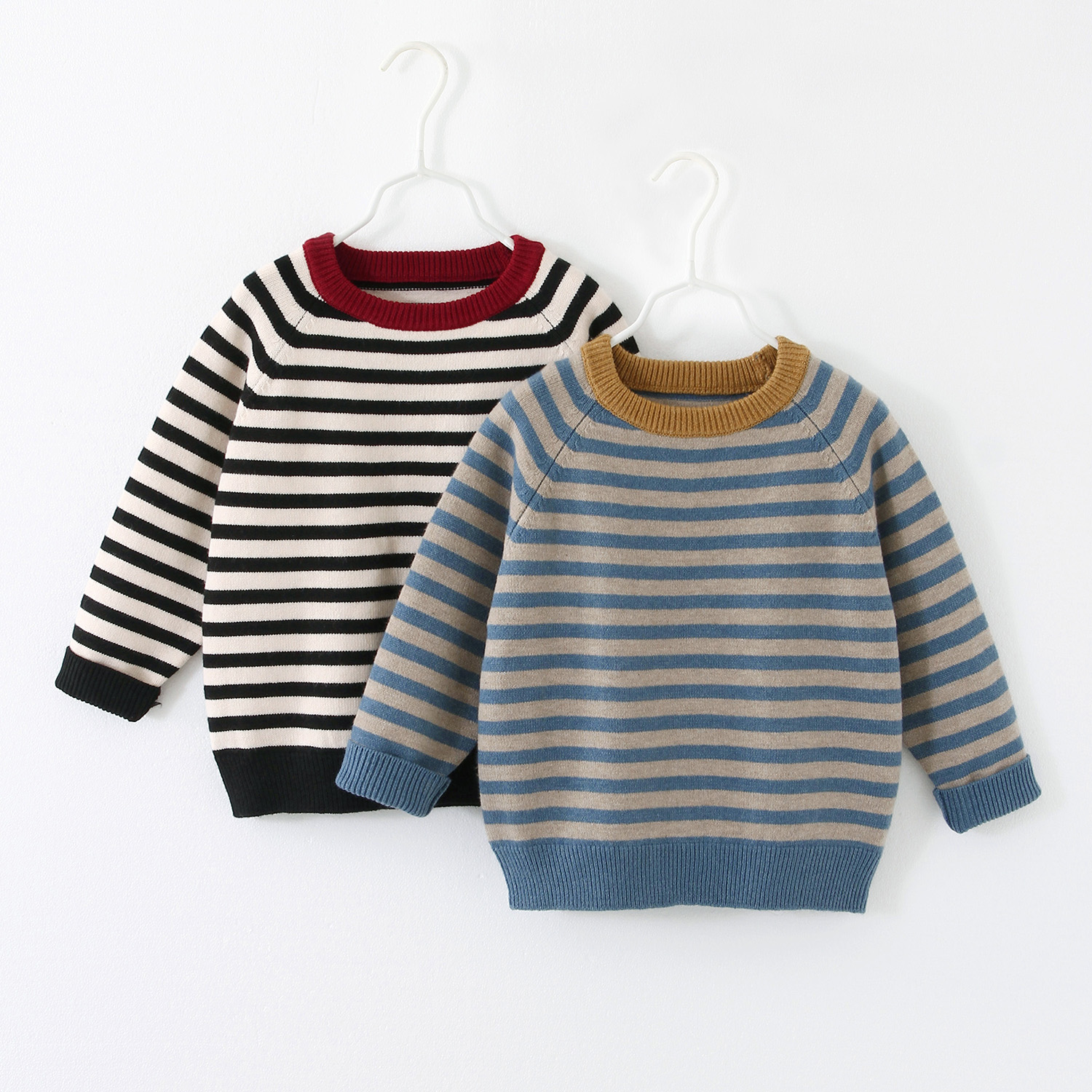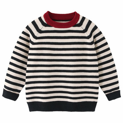 秋冬秋款男童条纹圆领毛衣针织衫