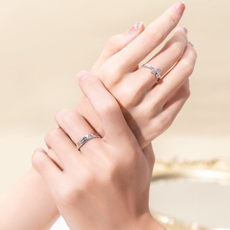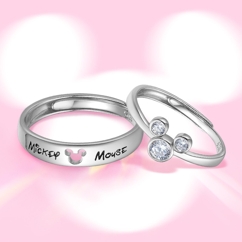 迪士尼正版授权米奇联名款情侣戒指对戒男女小众轻奢S925银开口