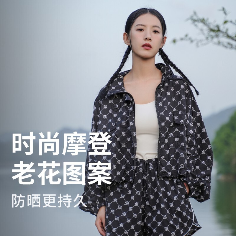 波司登奥莱夏凉感防晒衣女轻薄时尚防晒服潮流老花系列连帽UPF80+