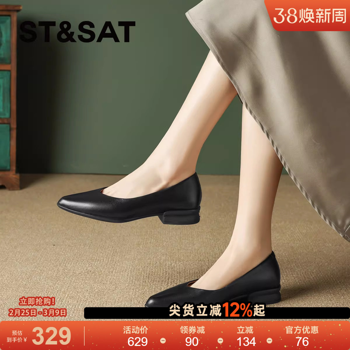 星期六羊皮尖头真皮鞋女鞋工作鞋