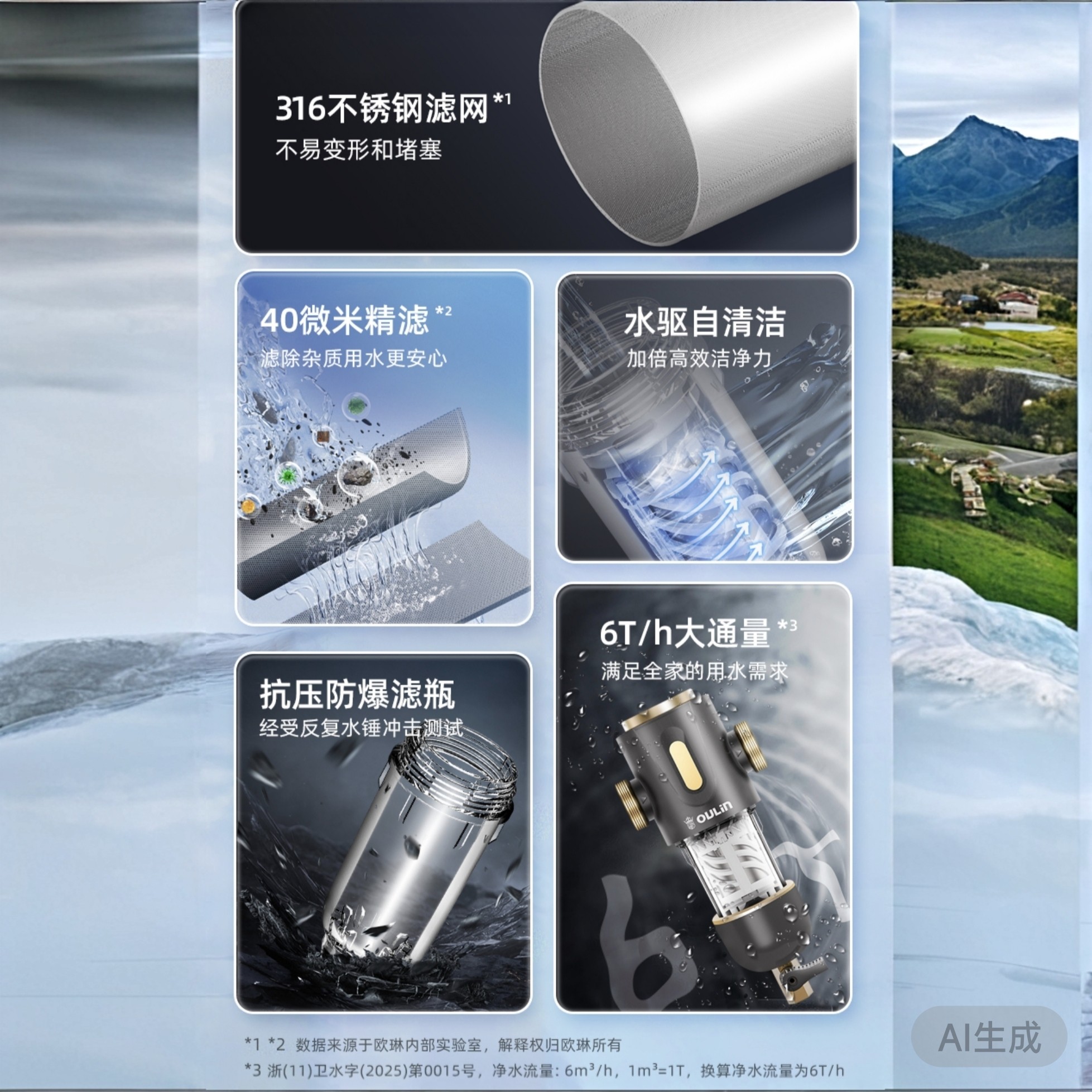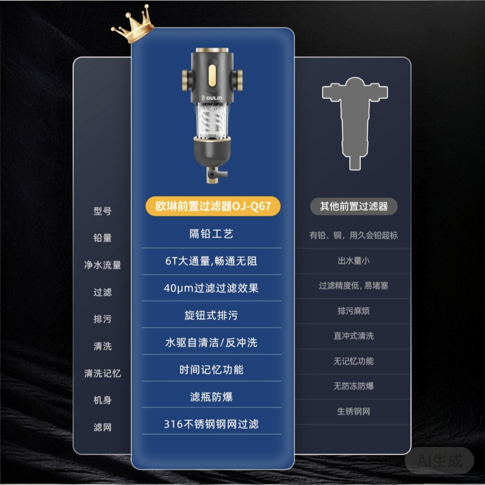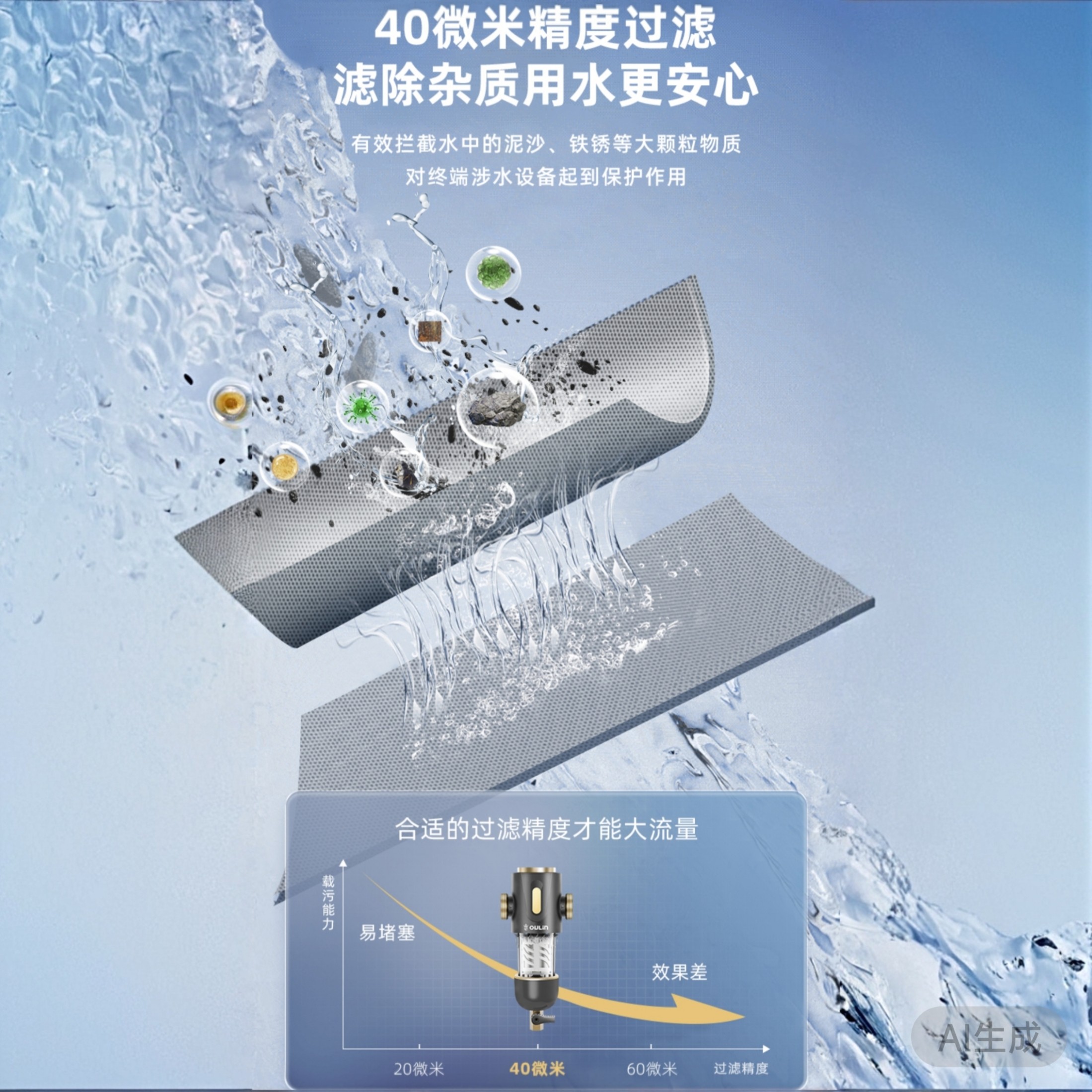 欧琳前置过滤器家用净水机免拆洗技术不锈钢过滤网
