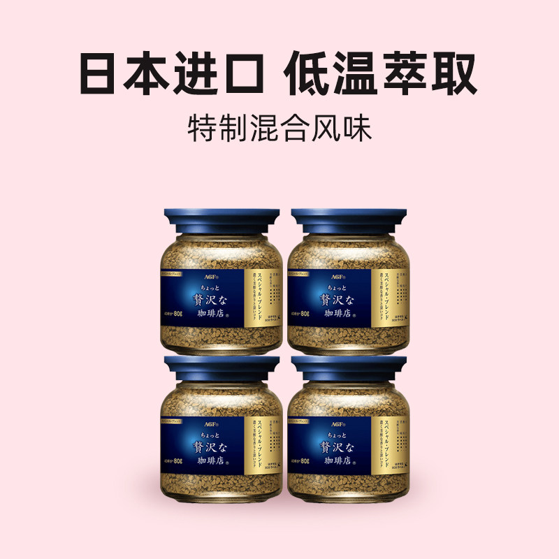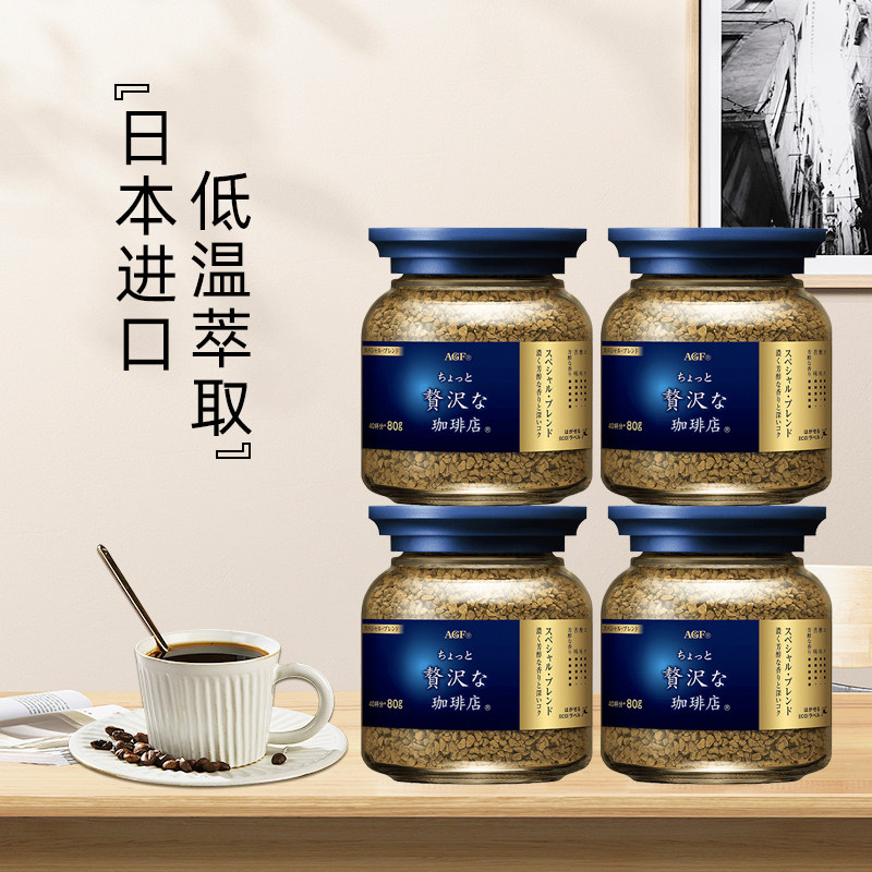 【自营】日本AGF咖啡美式黑咖啡无蔗糖提神速溶冻干咖啡粉80g*4罐