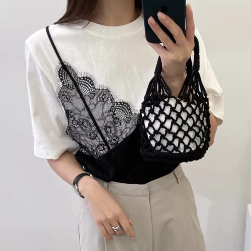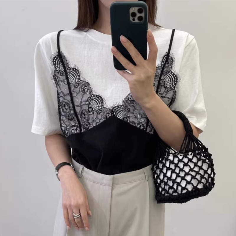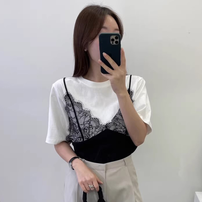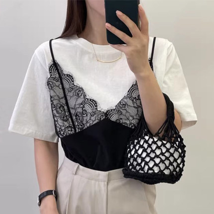 假两件拼接蕾丝吊带百搭短袖T恤